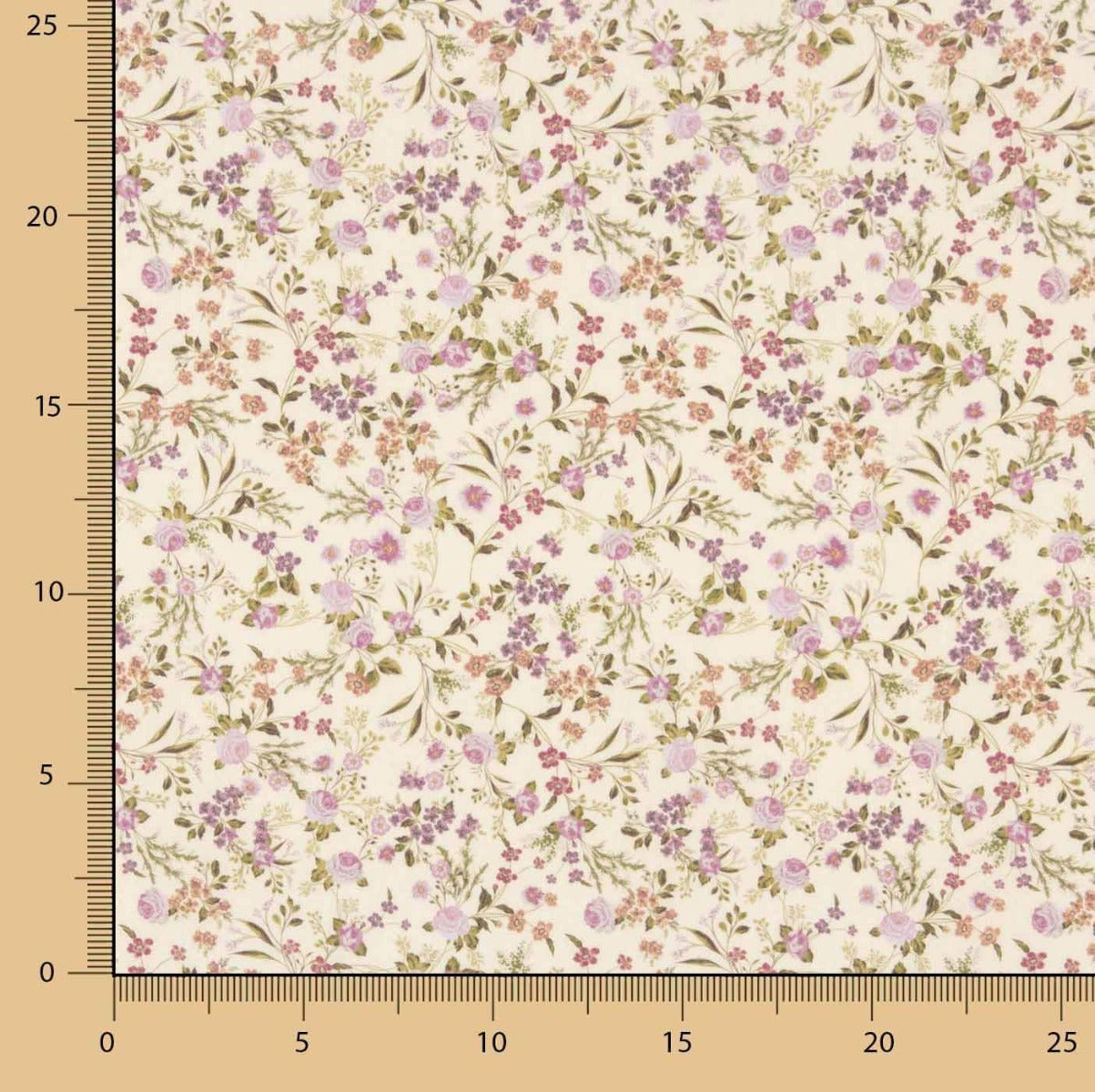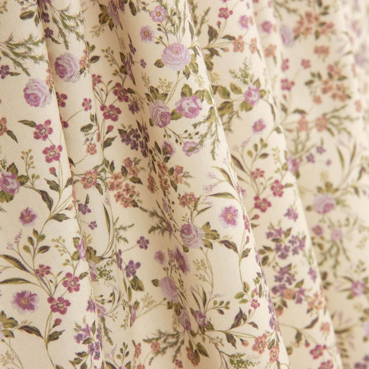 Inspiré par la beauté des fleurs sauvages, ce tissu en batiste de coton imprimé présente un délicat motif floral dans des tons lavande, rose et vert olive sur un fond de coton brut, idéal pour les vêtements au charme naturel. Composé à 100 % de coton, sa structure légère est respirante, douce au toucher et offre une chaleur douce similaire à celle d'une fine flanelle. Son motif organique espacé lui confère un aspect visuel frais et un style intemporel. Parfait pour coudre des chemisiers, des robes, des chemises, des vêtements pour enfants, des accessoires et des articles de décoration intérieure tels que des coussins ou des rideaux légers, ce tissu est facile à coudre et convient parfaitement aux projets romantiques, vintage ou d'inspiration champêtre.