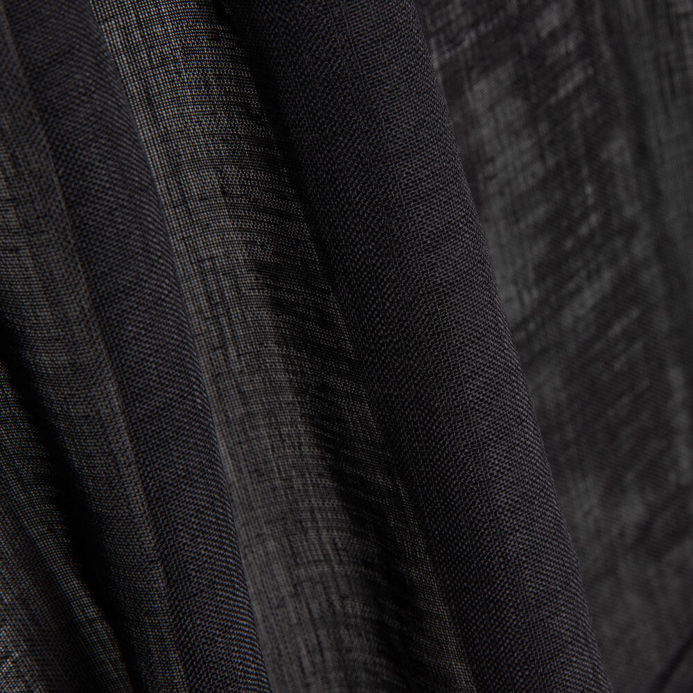 Achetez du tissu pour rideaux au mètre. Tissu pour rideaux en polyester noir uni. Tissu pour rideau translucide et transparent avec une chute permettant de réaliser des rideaux d'une hauteur de 270 cm. Facile d'entretien car il peut être lavé à la maison et ne se froisse pas (il est recommandé de ne pas utiliser d'assouplissant et de laver à faible révolution, il n'admet pas de séchoir). Demandez à notre service commercial la longueur nécessaire pour les différents types de rideaux : Panneau japonais, planches, ruban fronceur, etc.....