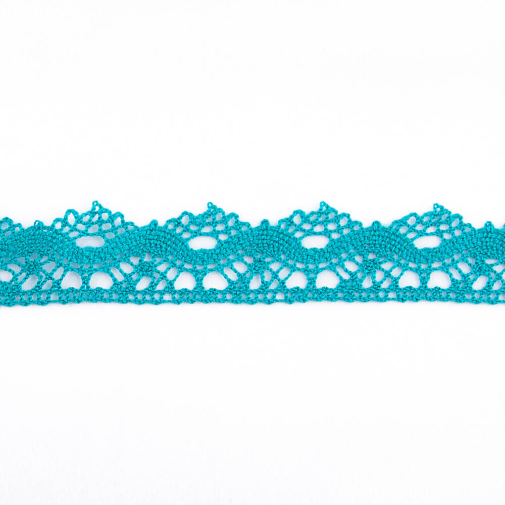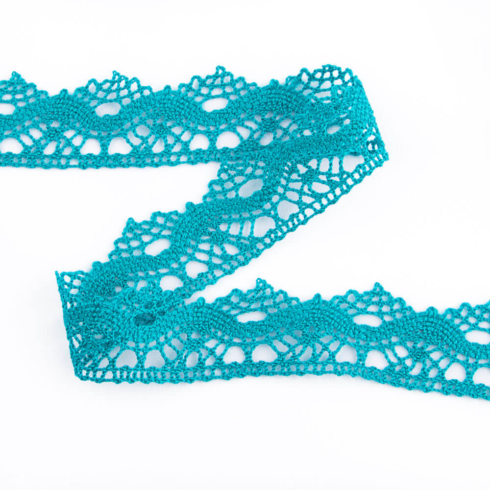 Ruban brodé vert forêt. Ruban brodé en forme de vagues, de 3 cm de large à son point le plus large et de 2,3 cm à son point le plus étroit, toutes de la même couleur. Achetez à partir d'1 mètre. Promotion jusqu'à épuisement des stocks.