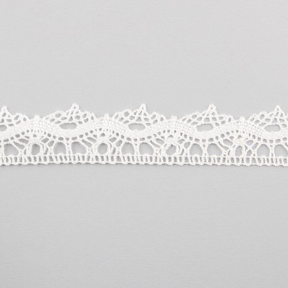 Ruban broderie écrue. Ruban brodé en forme de vagues, de 3 cm de large à son point le plus large et de 2,3 cm à son point le plus étroit. Achetez à partir d'un mètre. Promotion jusqu'à épuisement des stocks.