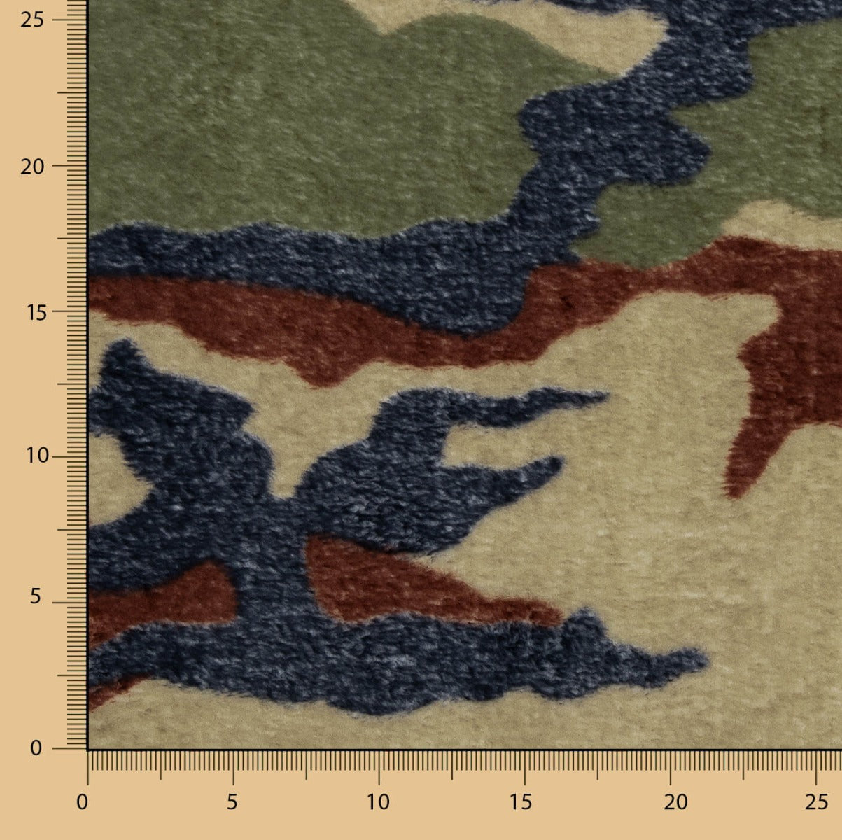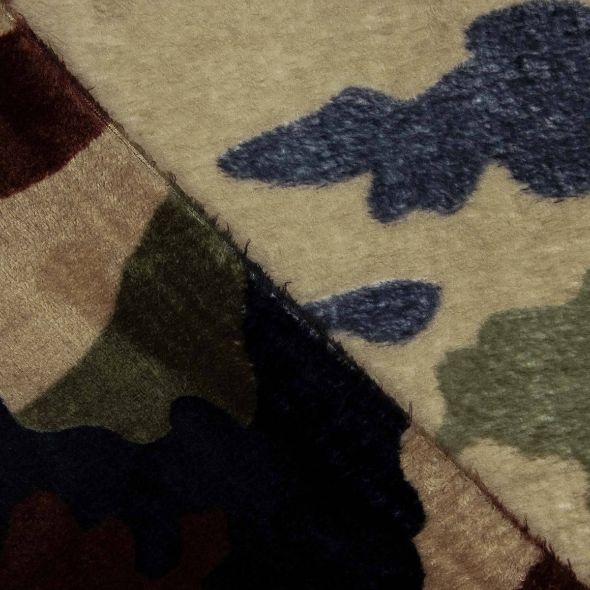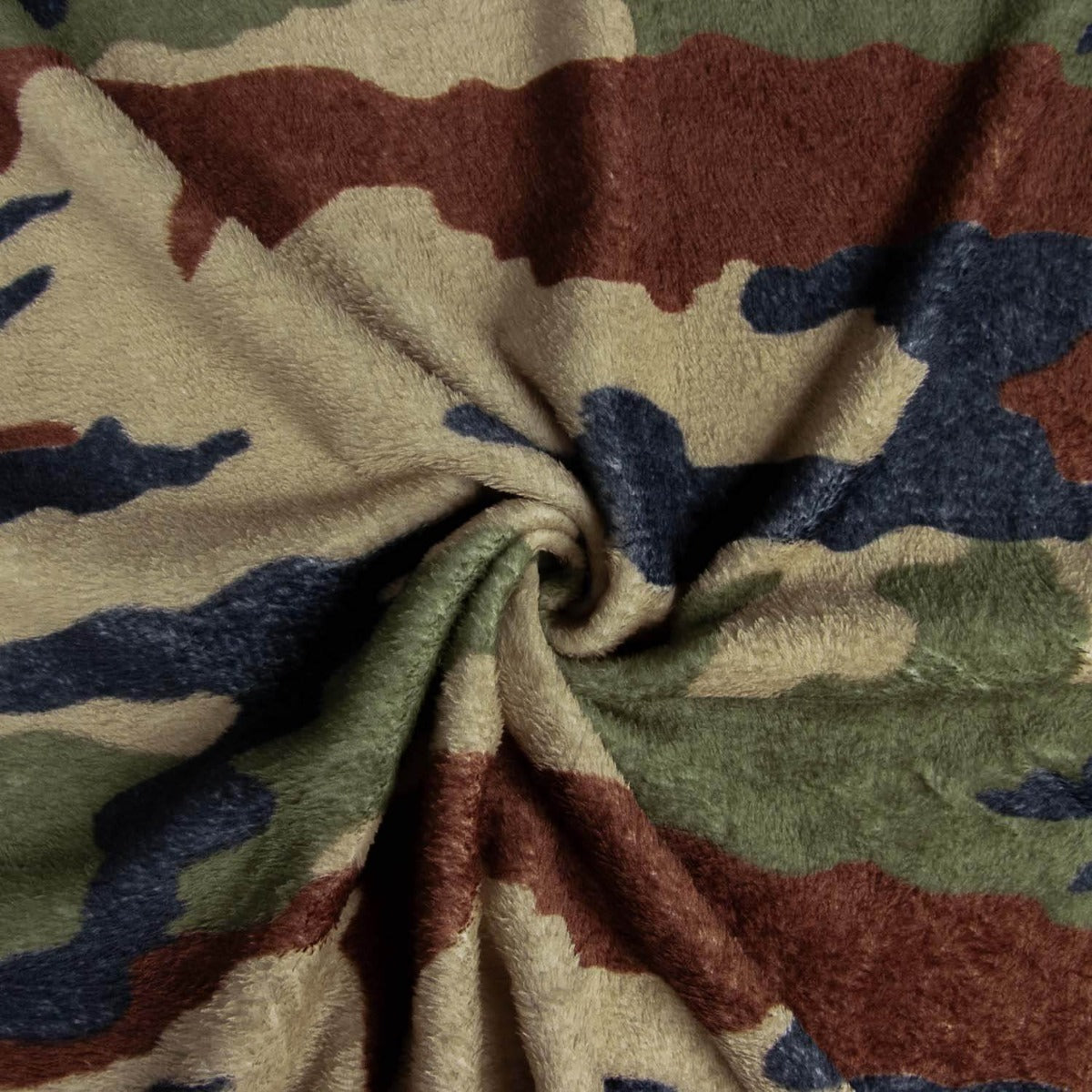 Coraline pour couvertures en imprimé camouflage vert, très doux au toucher, poils courts très doux sur les deux faces. Coraline est un tissu particulièrement doux, drapé et épais, qui se caractérise par sa chaleur à la couture. Parfait pour coudre vos propres couvertures, robes de chambre et même pyjamas d'hiver.