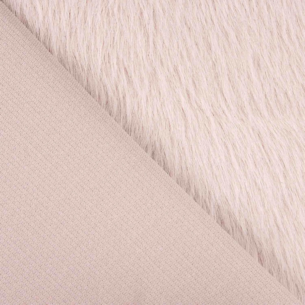 Tissu en fausse fourrure 100% polyester dans une élégante teinte rose nude.