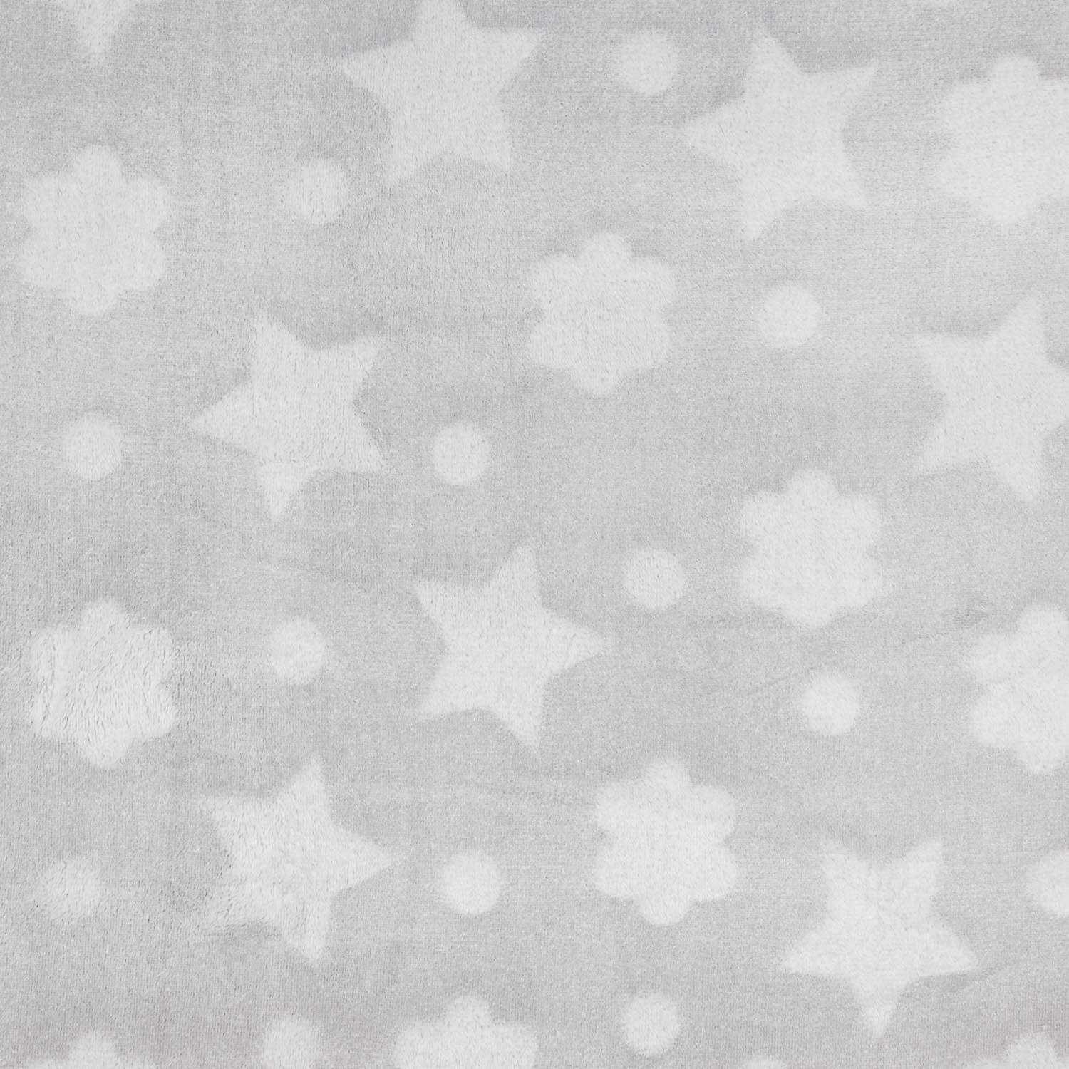 - Imprimé : Nuages, étoiles et pois en relief sur fond gris