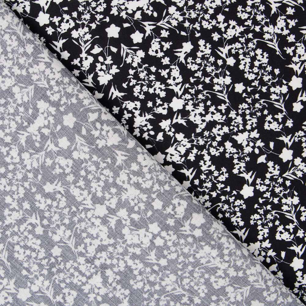 Coton Antibactérien Fleurs Noir