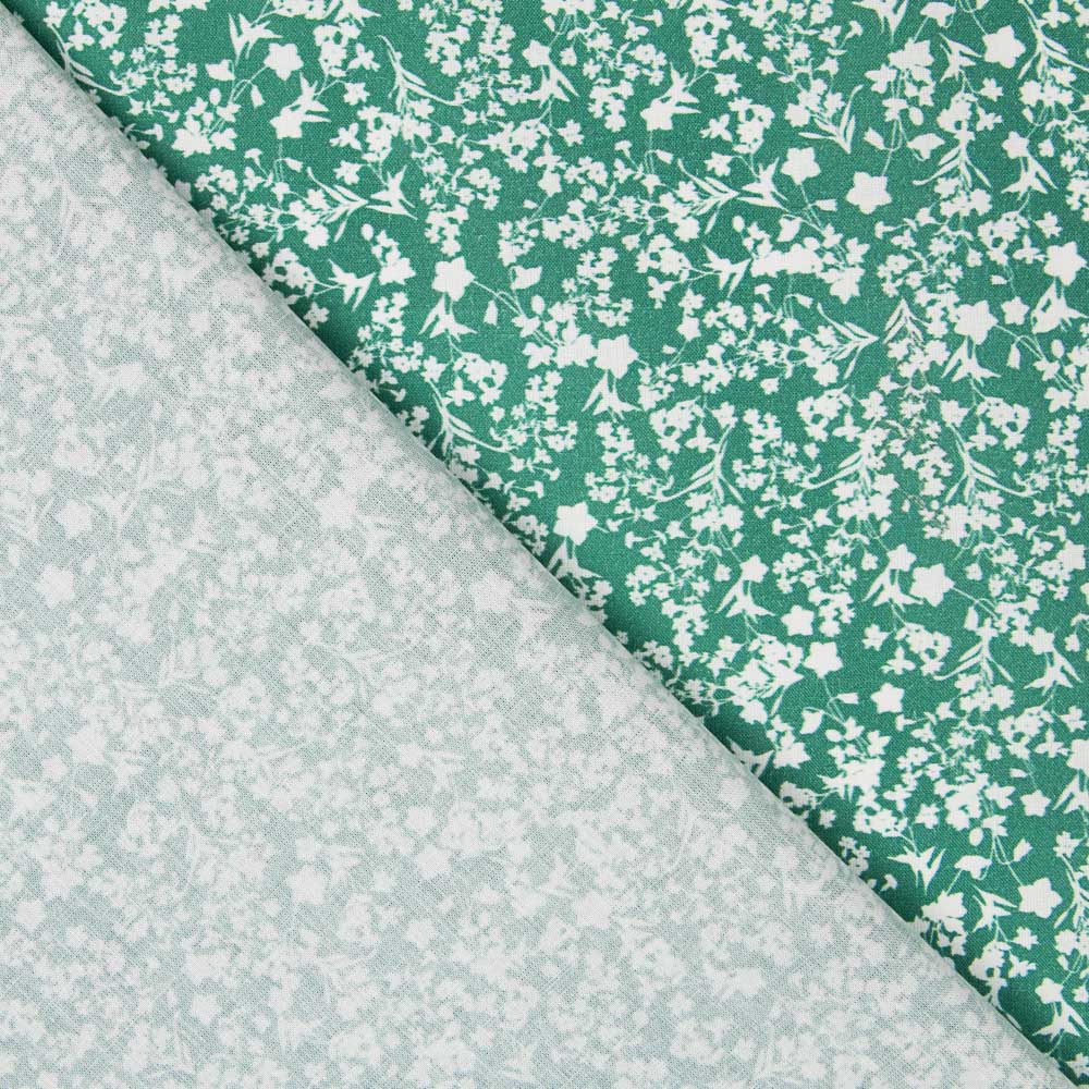 Tissu de coton antibactérien, imprimé fleurs, fond vert , avec certification OEKO-TEX. La popeline de coton est un tissu très doux, fin, soutenu et polyvalent. La popeline est un tissu de base idéal pour fabriquer des coussins, des draps, des patchworks et toutes sortes de décorations.