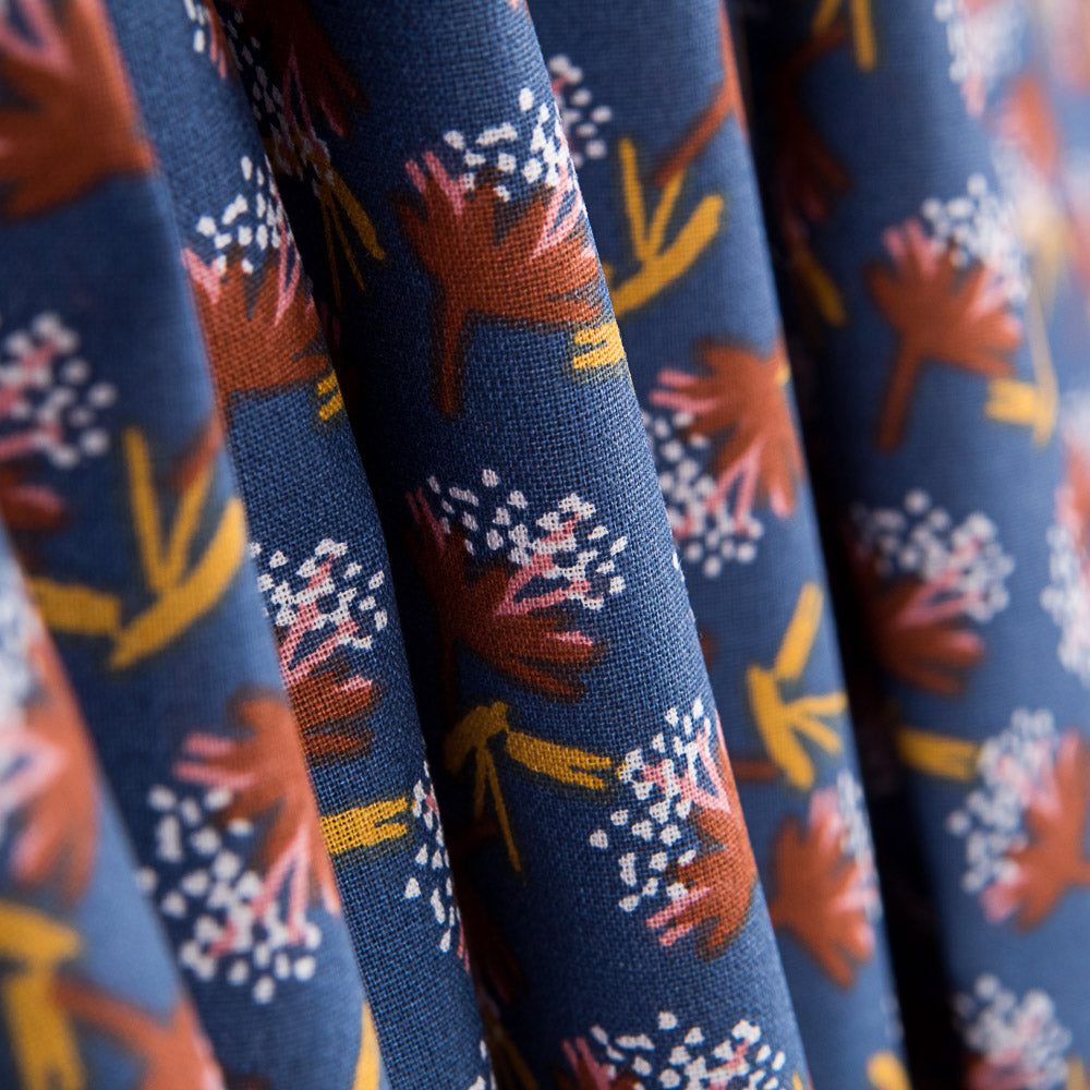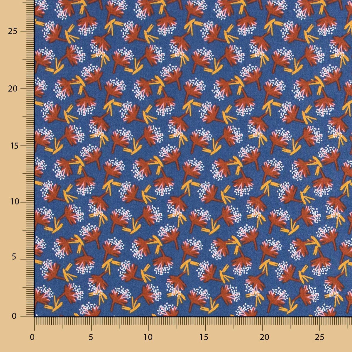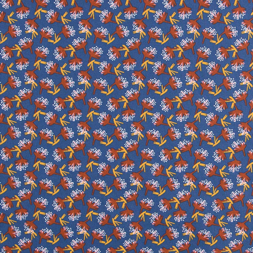 Tissu coton à imprimé bouquet marine. Tissu popeline de coton, très doux, fin et résistant, parfait pour la confection de coussins, draps, patchwork et toutes sortes de décorations. Coton OEKO-TEX.