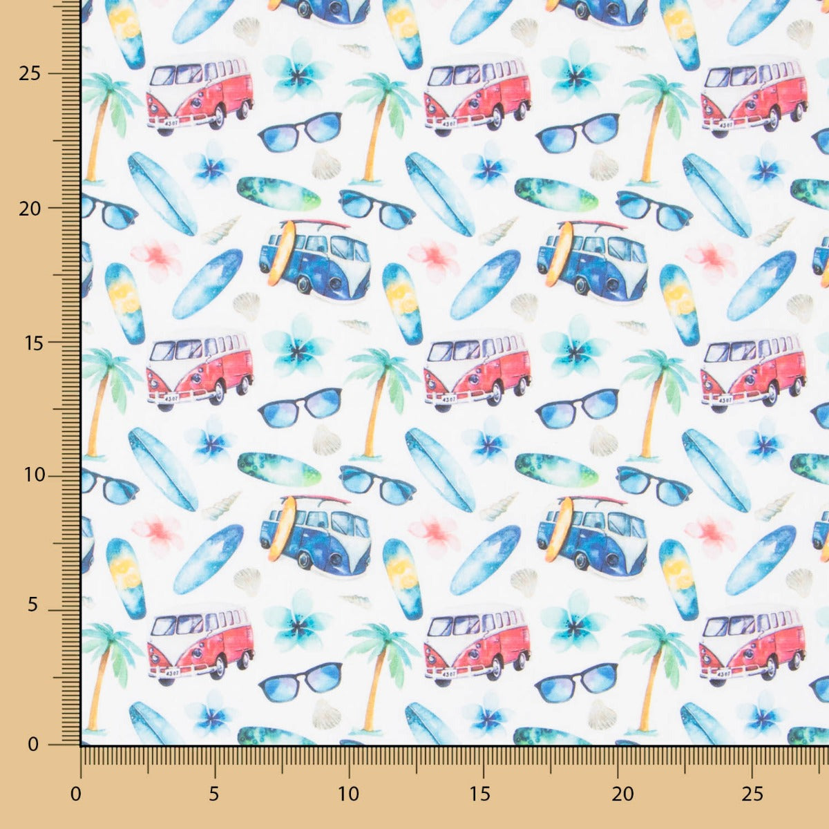 Tissu California Vans 100% coton. La popeline est un tissu de coton très polyvalent, doux, fin et soutenu. Tissu de coton idéal pour les accessoires, la décoration , le patchwork et les masques.