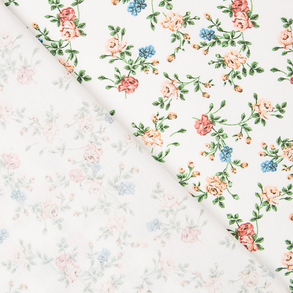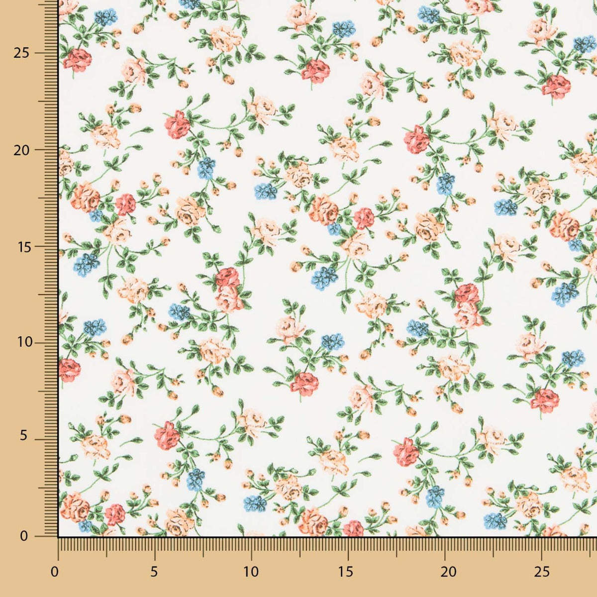 Tissu de coton imprimé avec des fleurs sur un fond écru. La popeline est un tissu de coton très polyvalent, doux, fin et soutenu. Le tissu de coton est idéal pour les accessoires, la décoration intérieure, le patchwork et même les masques. Comme il s'agit d'un tissu 100% coton, il est préférable de le laver avant de le manipuler.