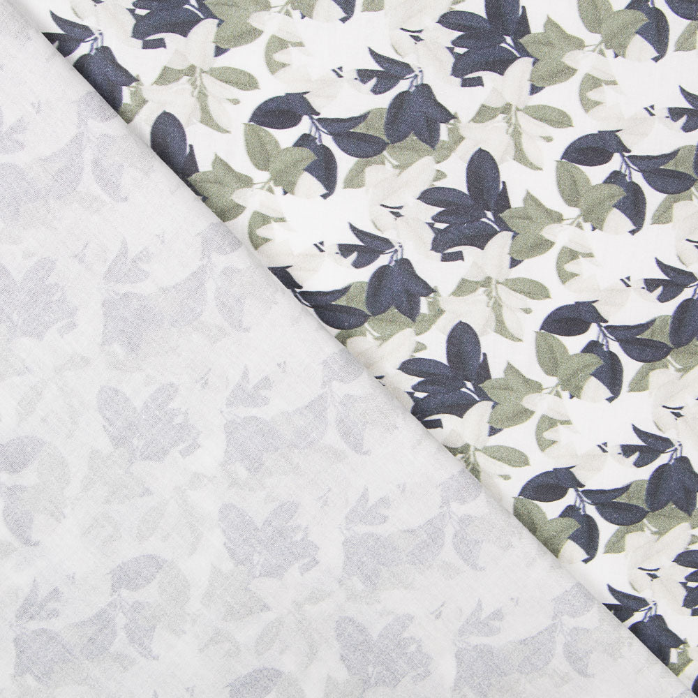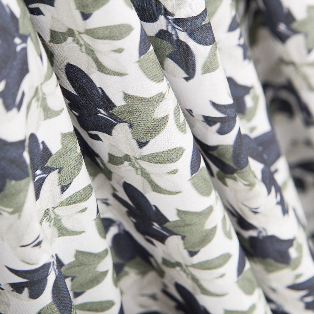 Tissu popeline de coton imprimé avec des feuilles de la fôret. Tissu 100% coton de haute qualité, doux et soutenu. Idéale pour fabriquer des draps, des coussins, des rideaux et des accessoires tels que des articles de toilette, des housses et des sacs. Il est également parfait pour les créations de patchwork.