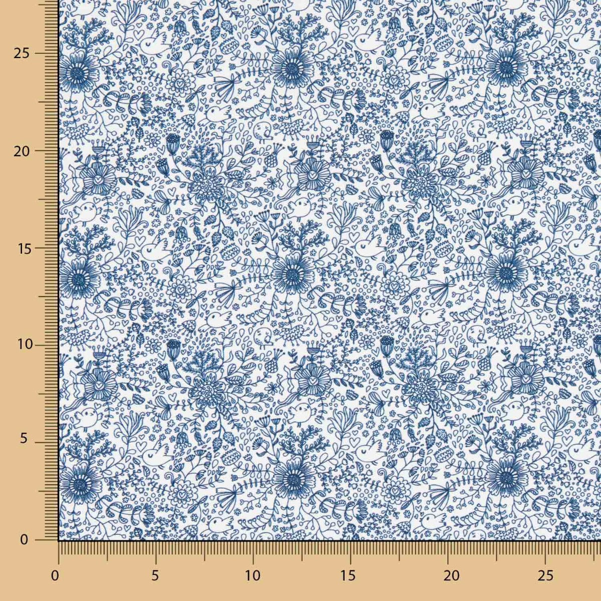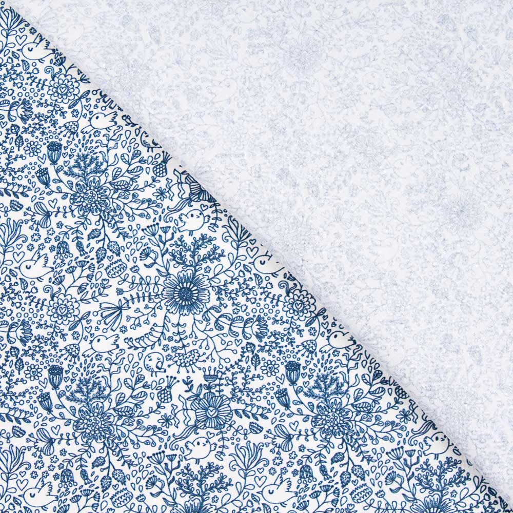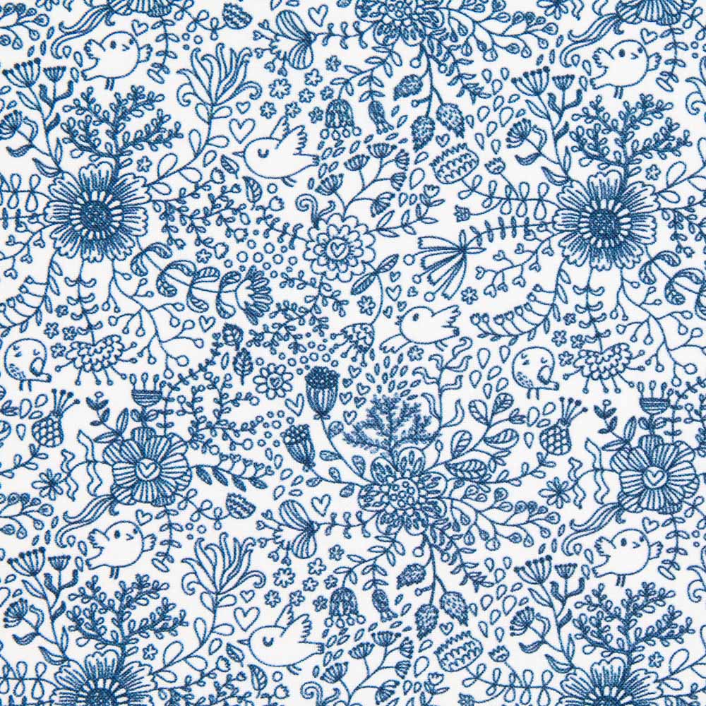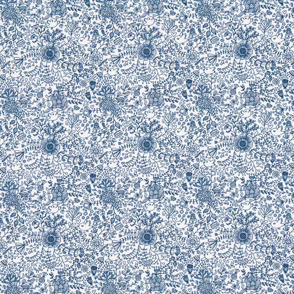 Coton percale imprimé avec des dessins en bleu marine. Tissu en coton biologique de haute qualité certifié ICEA, soutenu et doux. Popeline idéale pour fabriquer des draps, des coussins, des rideaux et des accessoires tels que des articles de toilette, des housses et des sacs. Il est également parfait pour les créations de patchwork.
