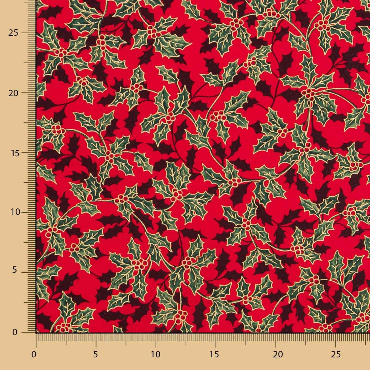 Tissu pour décoration de Noël imprimé guirlandes rouges. La popeline est un tissu de coton très polyvalent, doux, fin et soutenu. Tissu en coton pour les décos de fin d'année, les nappes et le patchwork.