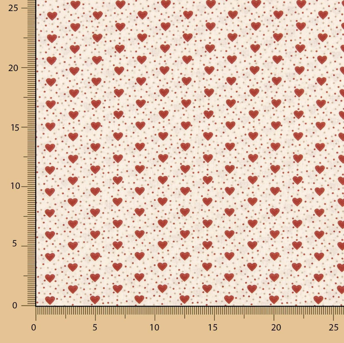 Tissu cretonne en coton 100 %, avec une largeur de 160 cm, avec un imprimé de petits cœurs sur fond blanc naturel, idéal pour des projets de décoration et de confection textile. La douceur et la fraîcheur du coton en font un tissu polyvalent, parfait pour confectionner des rideaux, coussins, draps ou même des robes légères de style romantique. De plus, c'est une option écologique et respirante, garantissant confort à chaque utilisation.