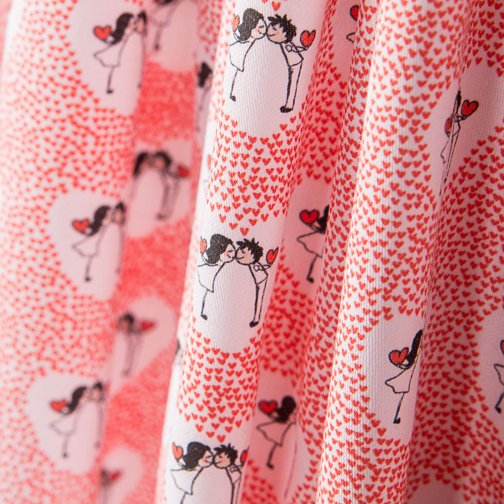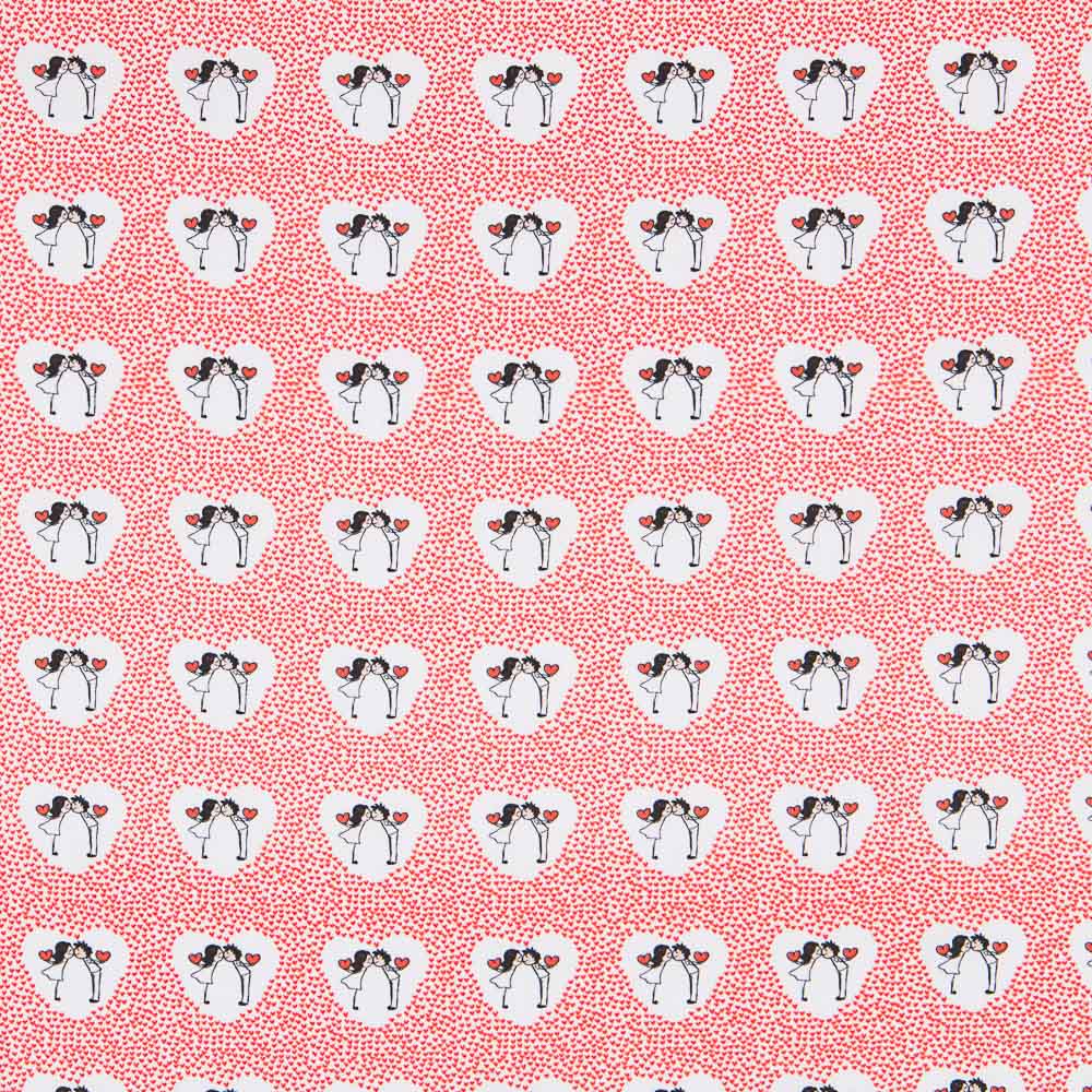Popeline de coton imprimée de coeurs.Tissu de coton respirant, fin et très doux, caractérisé par sa grande polyvalence. La popeline est un tissu de base idéal pour fabriquer des coussins, des draps, des patchworks et des masques. Comme il s'agit d'un tissu 100% coton, il est préférable de le laver avant de le manipuler.