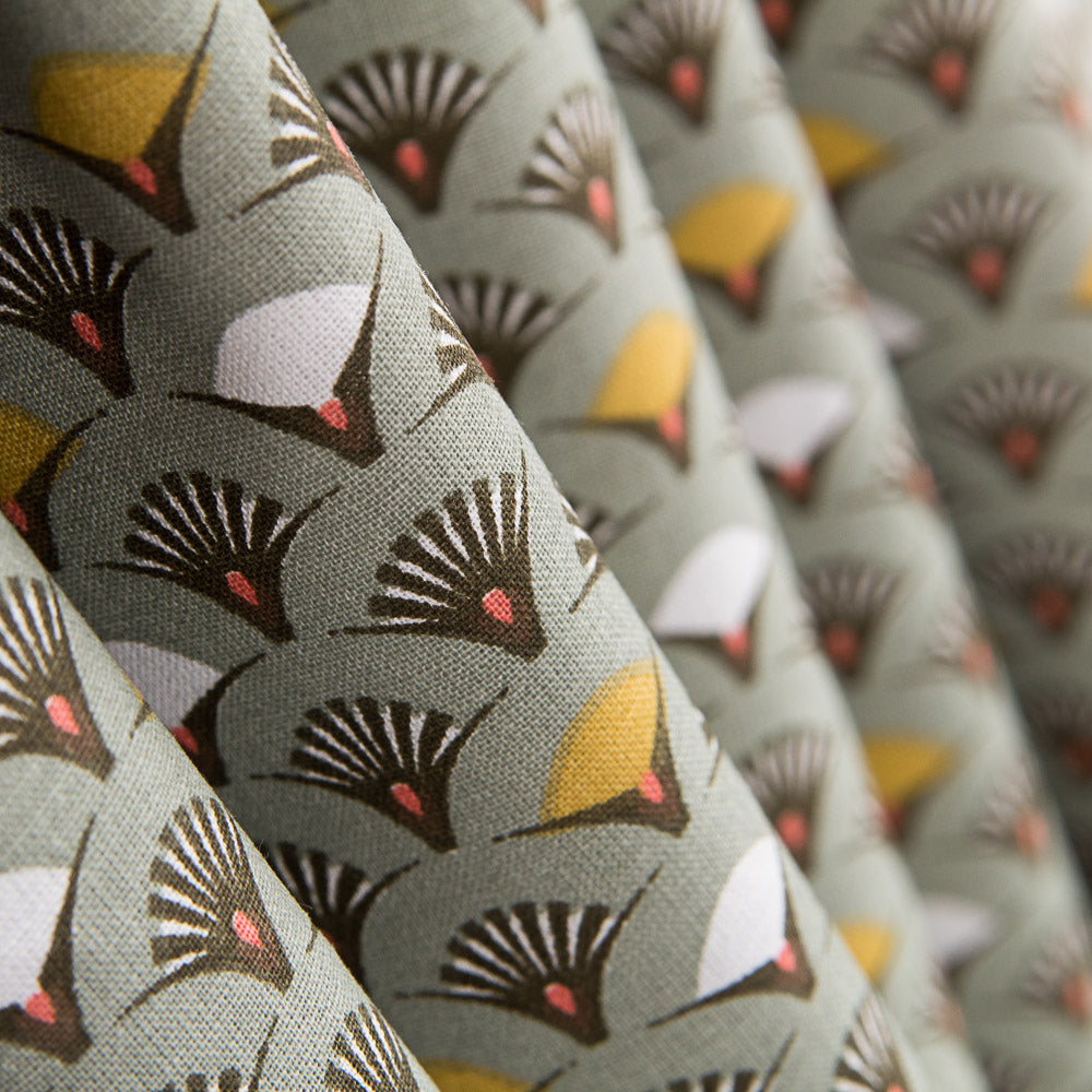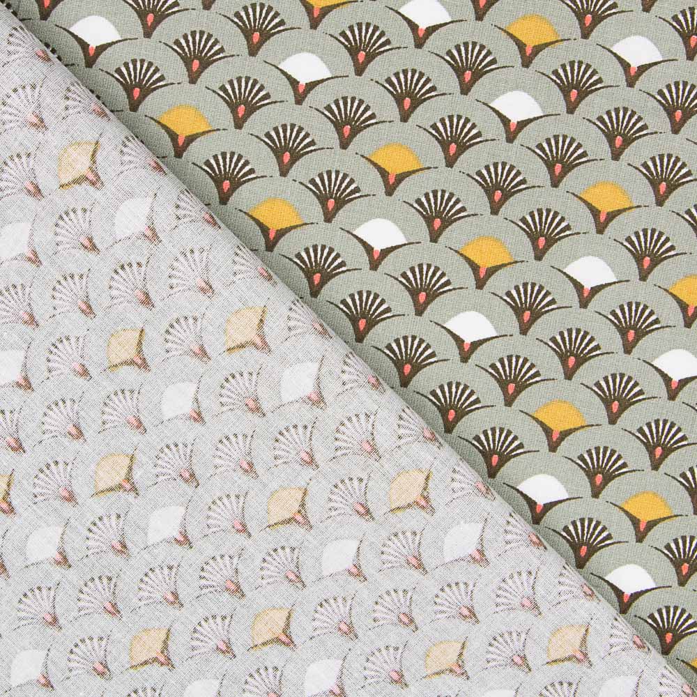 Tissu coton à imprimé pai pai olive. Tissu popeline de coton, très doux, fin et résistant, parfait pour la confection de coussins, draps, patchwork et toutes sortes de décorations. Coton OEKO-TEX.