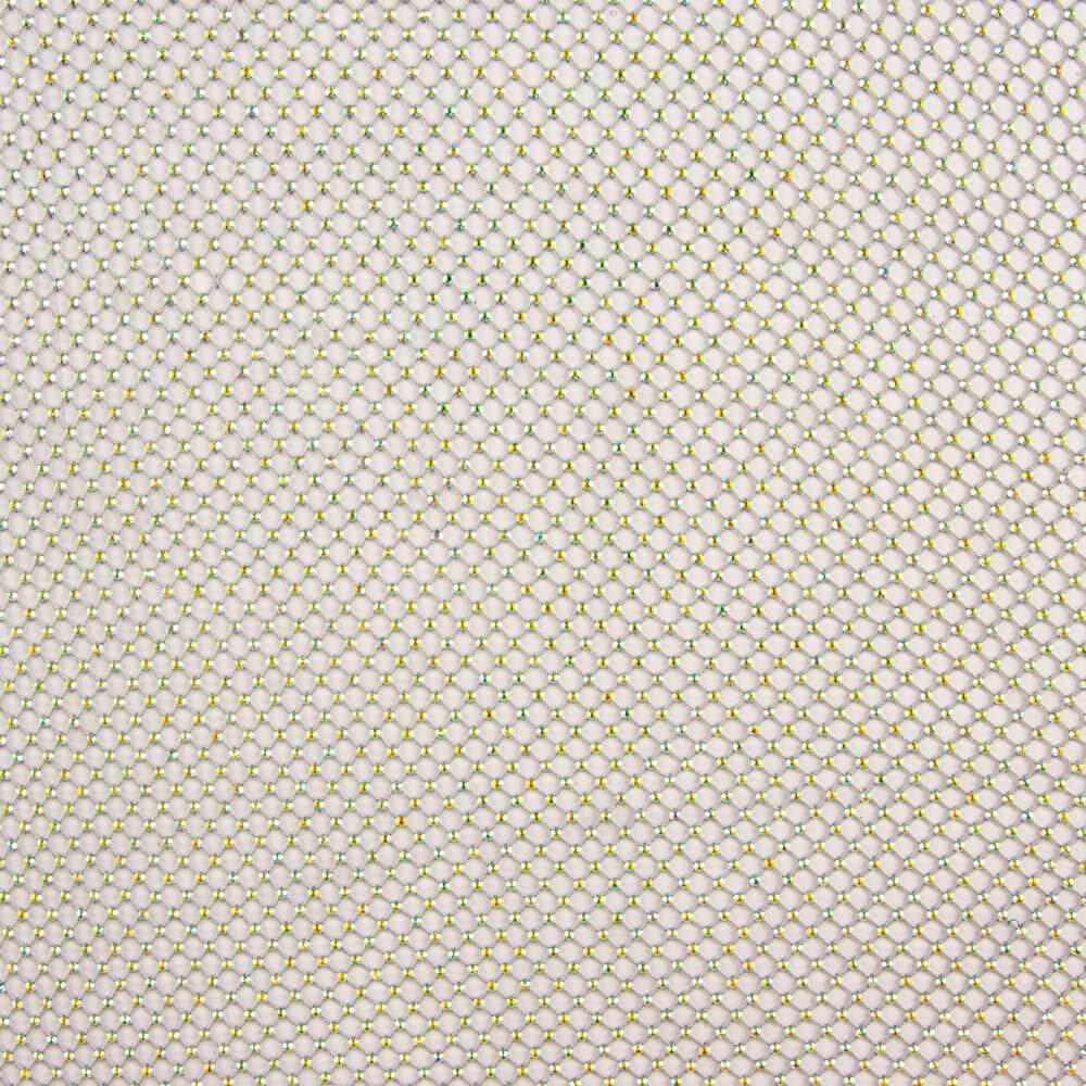 Tissu de filet gris avec strass étincelants. Tissu en filet avec strass très lumineux pour les tenues de fête et les robes. Filet élastique grâce à son type de nid, même sans élasthanne, avec beaucoup de poids et de drapé et avec une brillance spectaculaire. Il y a une bordure de filet sans strass des deux côtés, la zone de filet avec strass a une largeur d'environ 135 cm. Le losange du filet mesure 1 centimètre et les strass environ 2 millimètres.