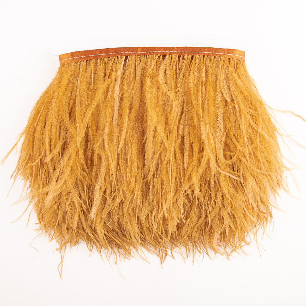Flecos de pluma natural de Avestruz en color caramelo.
