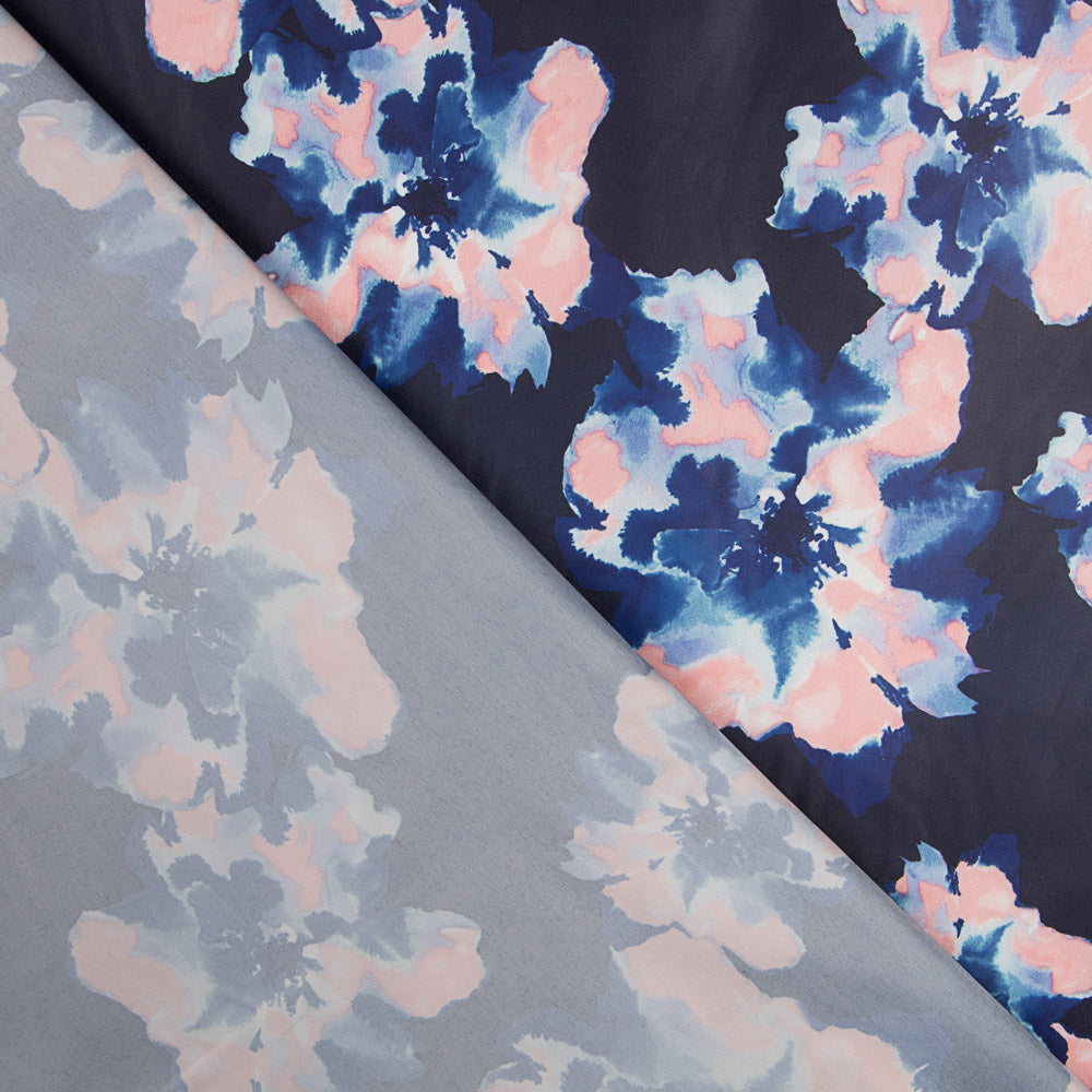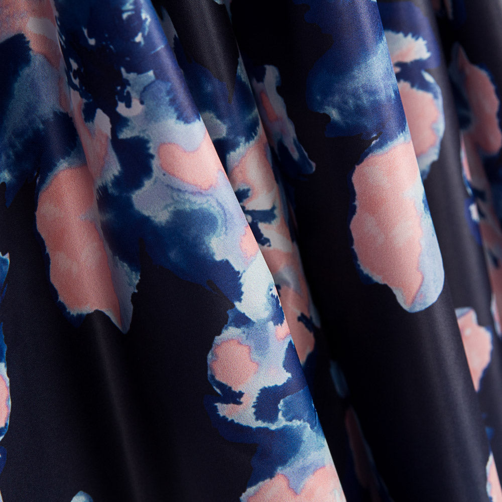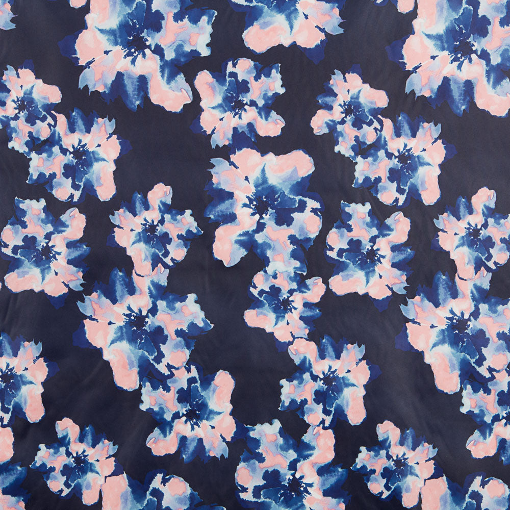 Tissu déperlant avec imprimé floral à effet liquéfié. L'hydrofuge est un tissu en polyester fin et très doux, très résistant et totalement opaque. Parfait pour les parkas, les vestes et les coupe-vent.