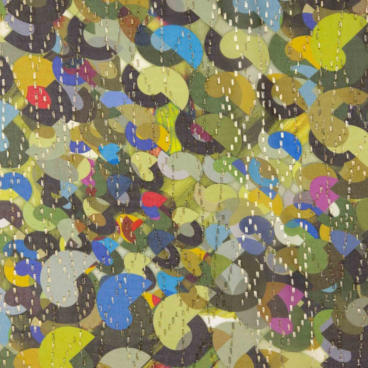 Descubre la elegancia vibrante de esta gasa georgette lúrex con estampado abstracto exclusivo de Ribes y Casals.