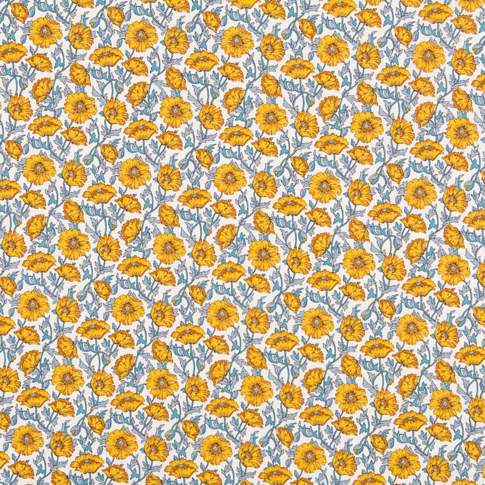 Popeline Liberty London imprimée avec des fleurs. Tissu Liberty London en coton de haute qualité, de texture fine et particulièrement douce et agréable au toucher. Ce tissu est idéal pour la confection de chemises, de jupes et de robes.