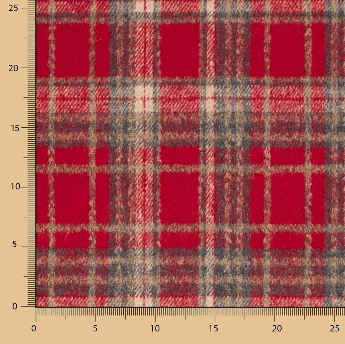 Tissu de loden avec toucher laine, composé à 100 % de polyester avec des carreaux rouges, une option exceptionnelle pour confectionner des vêtements d'extérieur résistants et élégants. Ce tissu offre un aspect classique avec une texture douce et chaude, idéal pour les manteaux, vestes et capes. Grâce à sa composition en polyester, il est très durable, facile à entretenir, sans sacrifier le confort. Parfait pour ceux qui recherchent fonctionnalité et style dans les climats froids.