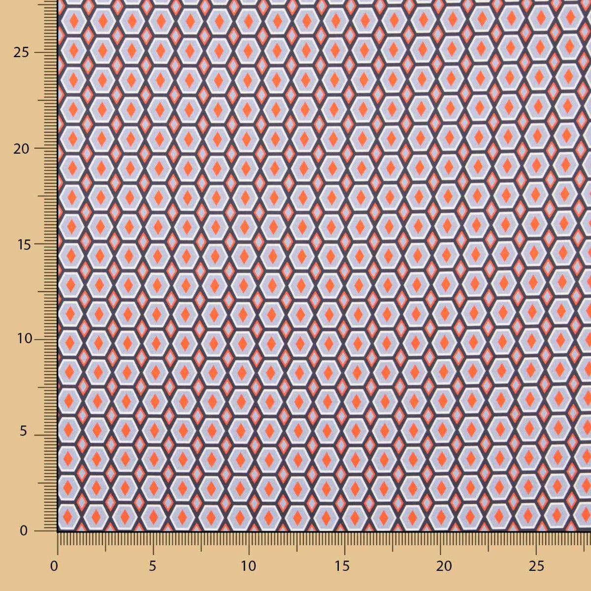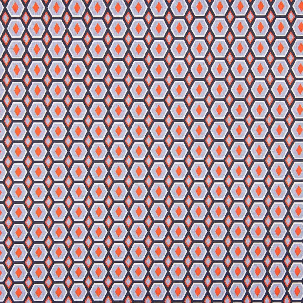 Maille Jersey en lycra géo mauve pour les robes d'été. lycra fin extensible orange mat, lycra parfait pour les vêtements d'été. Lycra totalement opaque avec beaucoup de drapé, très agréable et doux au toucher.