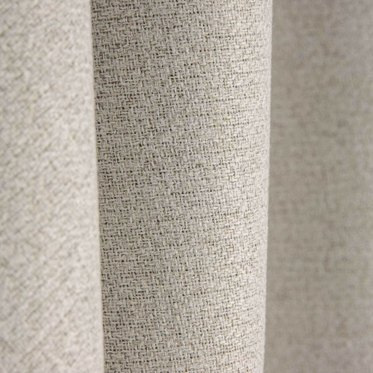 Tela black out total estilo rústico beige. Tejido oscurante para cortinas ignífugas. El black out es una tela para cortinas muy opaca, gruesa y caída, con acabado simulando falso liso. Ofrece un poder oscurante del 99% de opacidad, ideal para ensombrecer estancias evitando la entrada directa del sol.