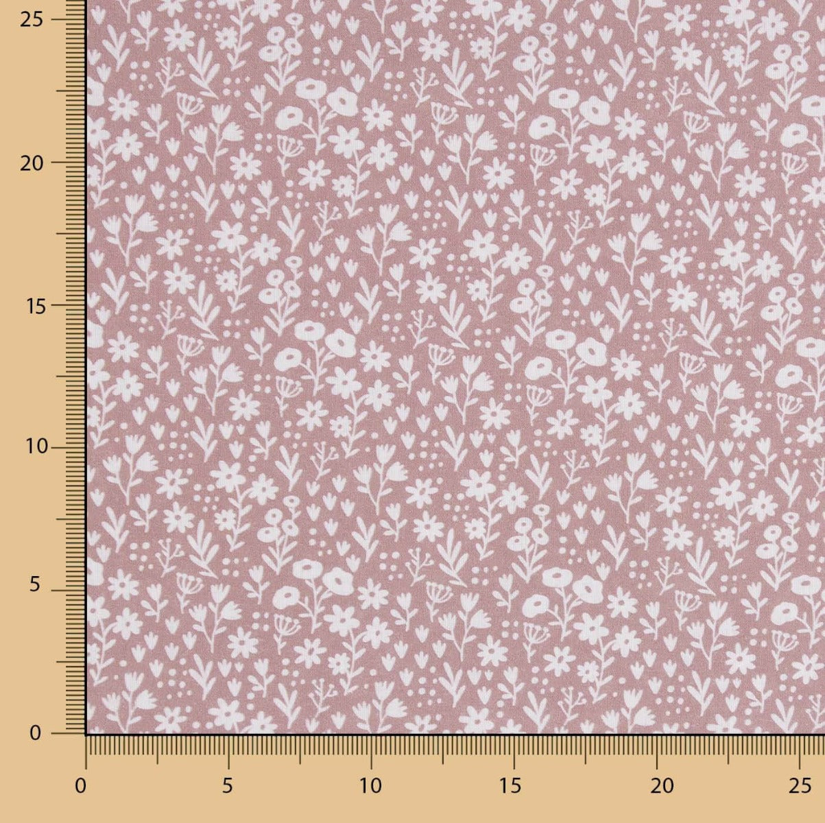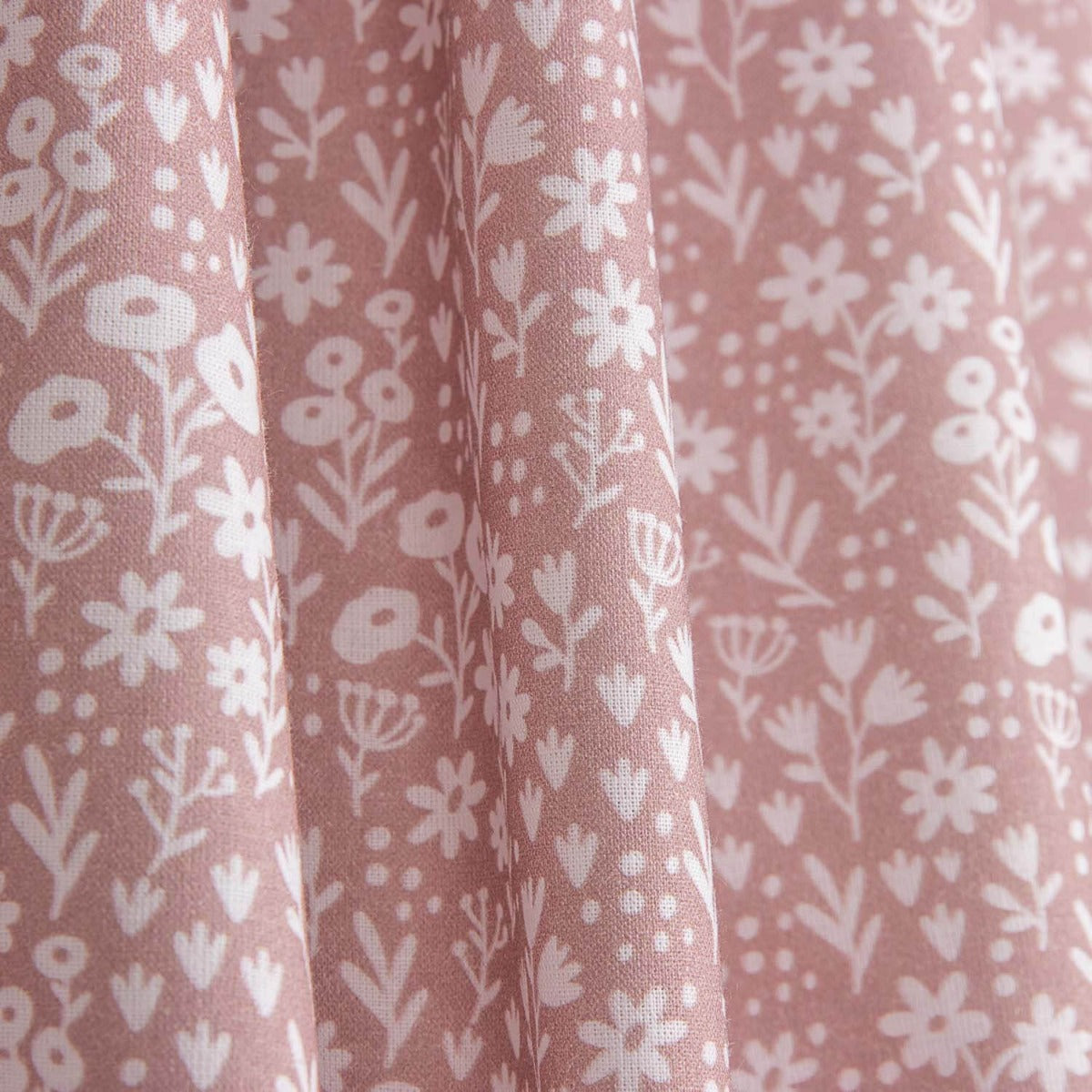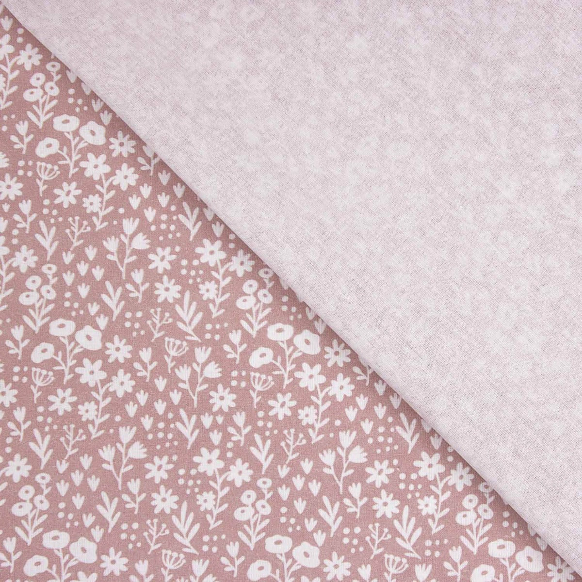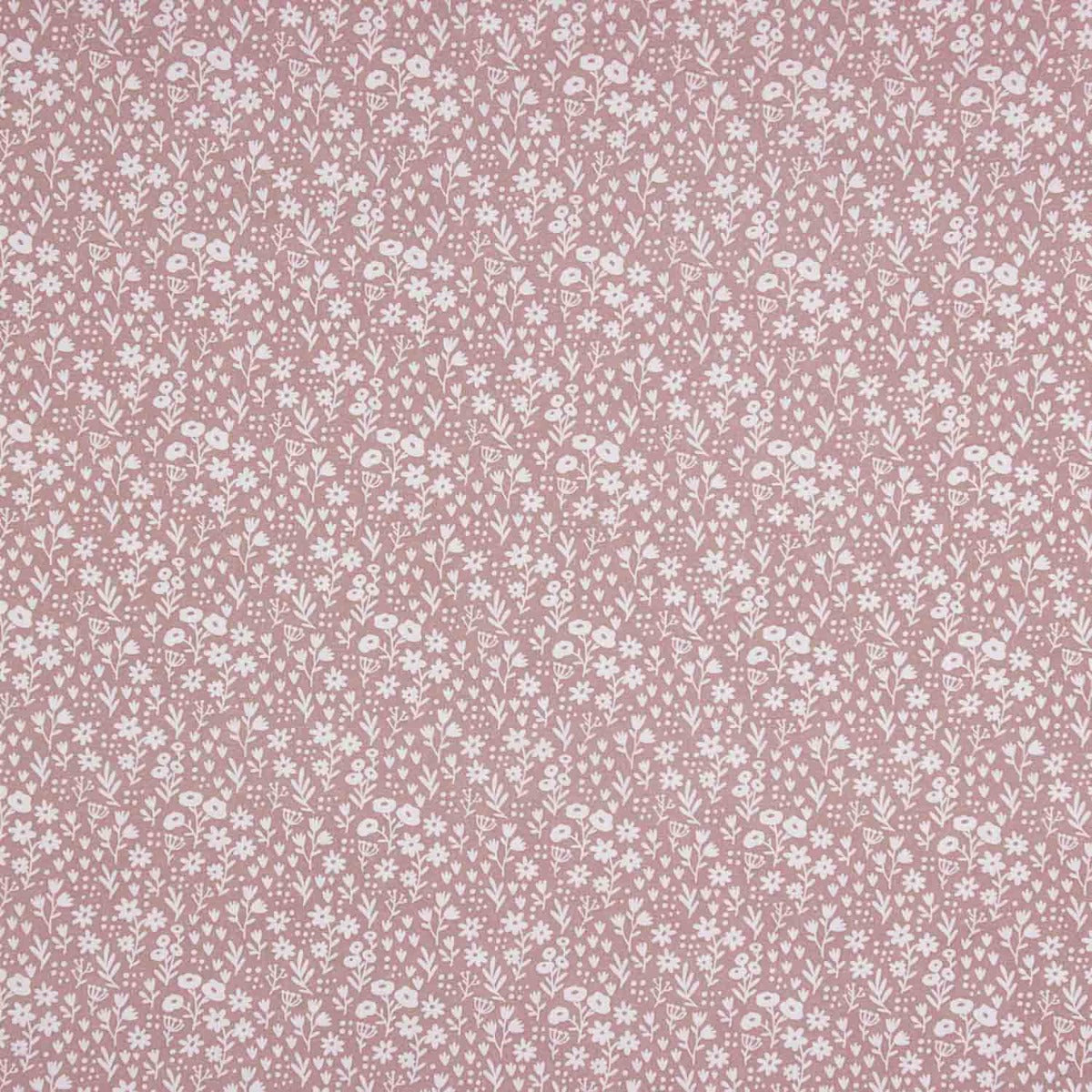 Tela de percal 100% algodón con un encantador estampado de pequeñas flores blancas sobre fondo rosa empolvado. Un diseño delicado y atemporal, perfecto para proyectos de costura que buscan un estilo suave, femenino y natural.