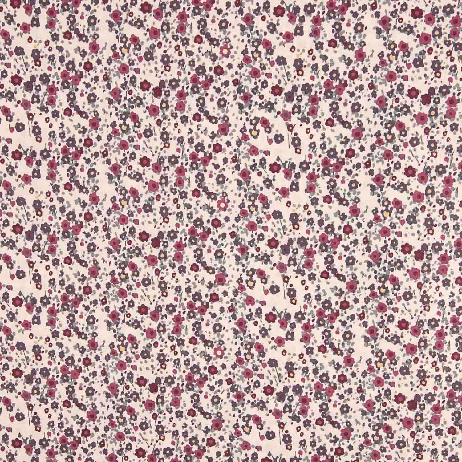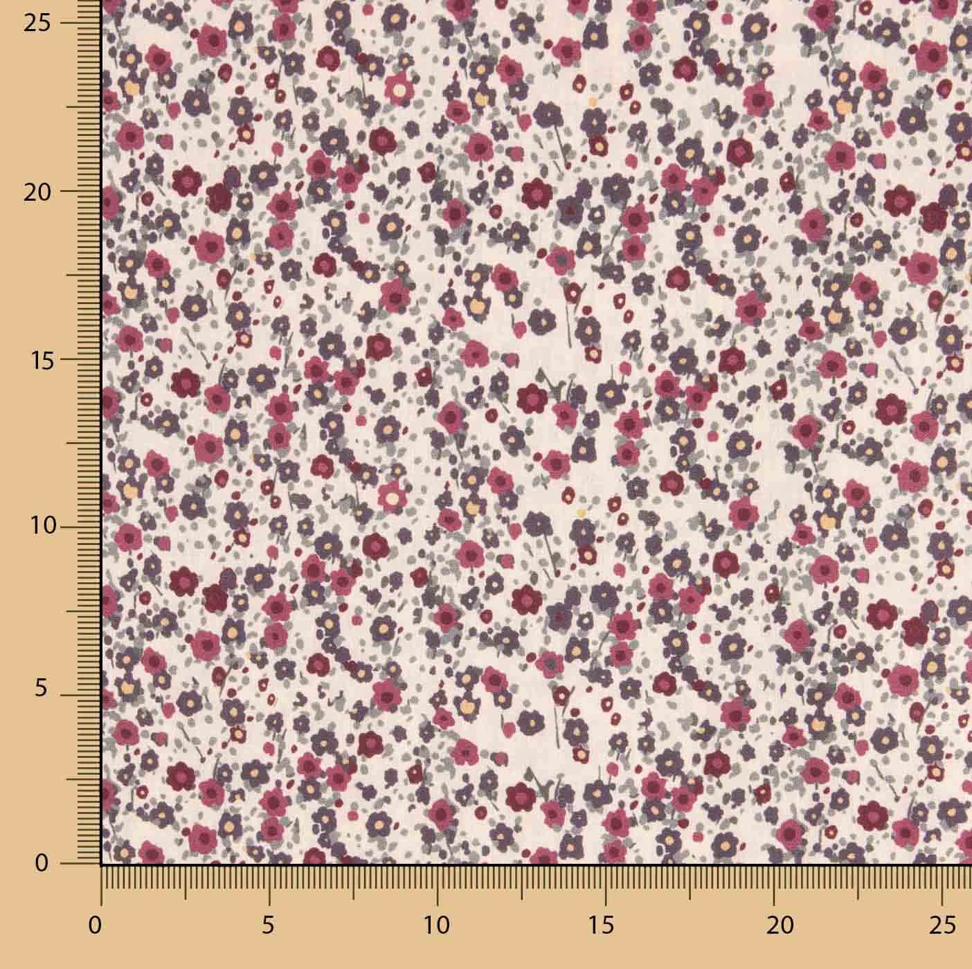 Composition : 100 % coton | Qualité : Percal 200 fils | Largeur : 140 cm | Impression : Numérique haute définition | Motif : Micro floral dans les tons bordeaux et gris sur fond clair | Utilisations : Draps, housses de couette, chemises, robes, chemisiers, coussins et décoration
