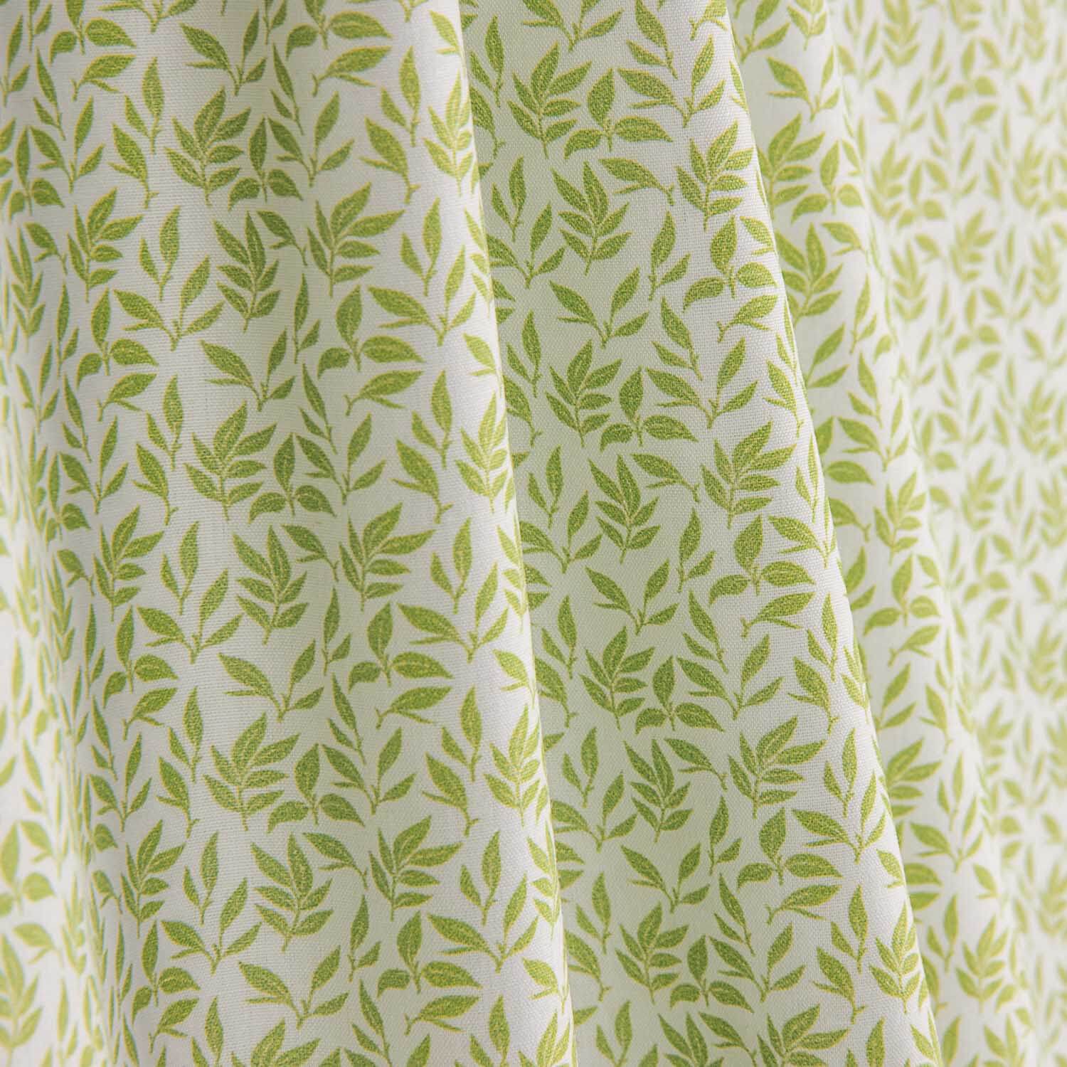 Composition : 100 % coton | Qualité : Percal 200 fils | Largeur : 140 cm | Impression : Numérique haute définition | Motif : Micro-branches de couleur pistache sur fond clair | Utilisations : Draps, housses de couette, chemises, robes, chemisiers, coussins et décoration