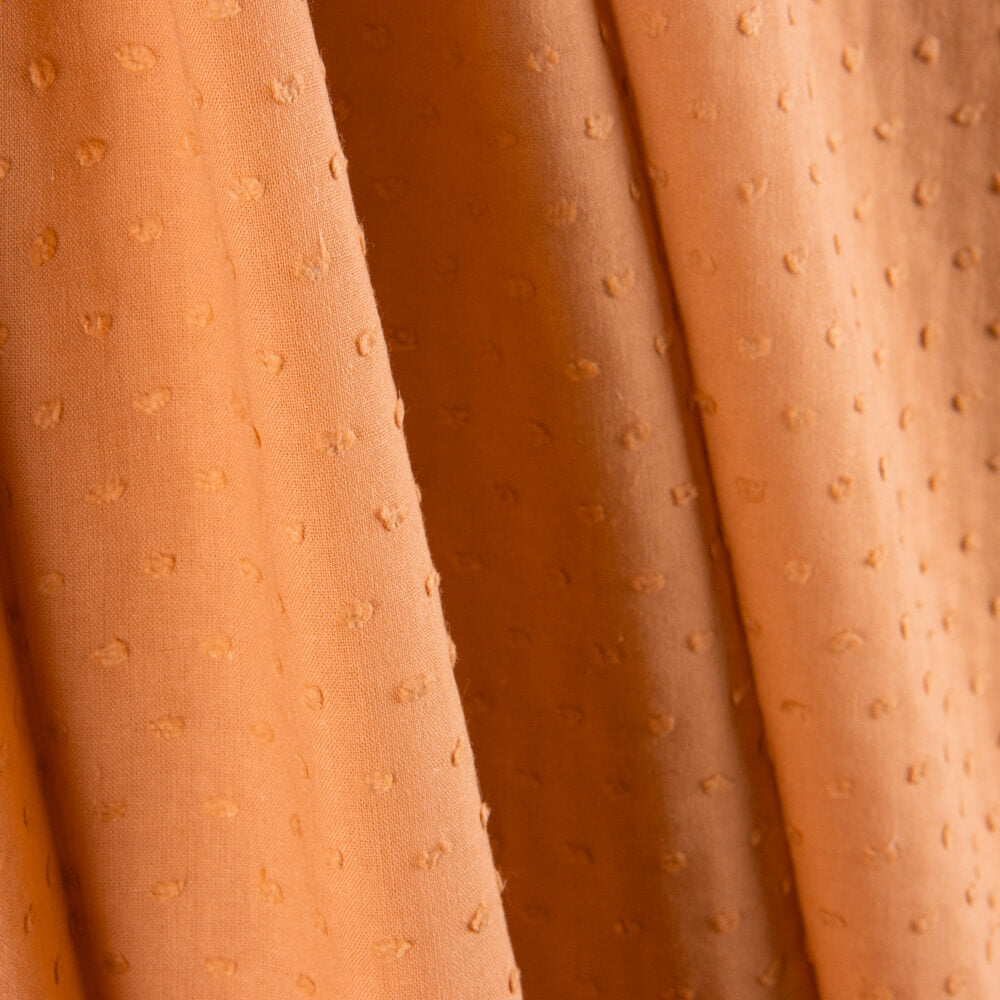 Tela de plumeti marrón teja en algodón de gran calidad y muy versátil. El plumeti es una tela de algodón con un pequeño lunar bordado, sostenido, fino y fluido. Algodón plumeti con el que puedes confeccionar vestidos, faldas y camisas.