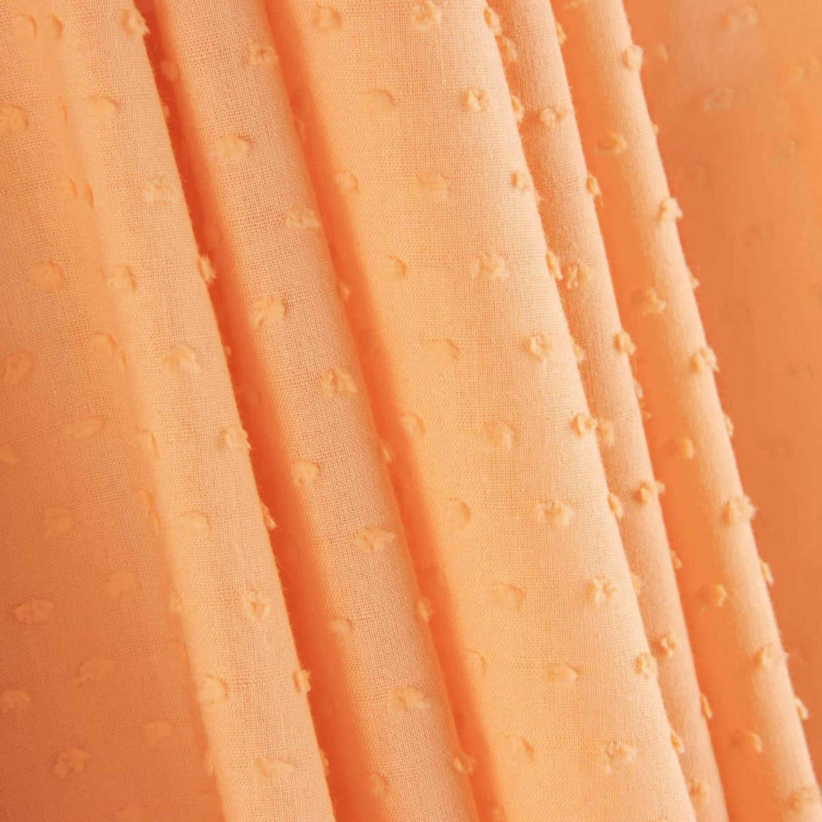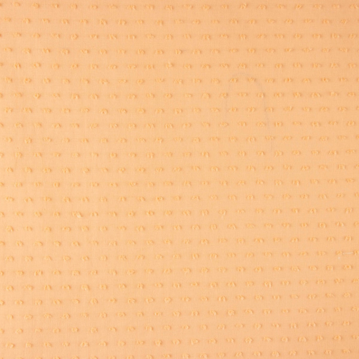 Notre batiste de coton Swiss Dot 100 % coton en orange saumon est un tissu léger et frais, au toucher chaud, parfait pour des créations gaies et élégantes. Il est orné de petits pois brodés (plumetis) espacés de 1,3 cm, dans le même ton orange saumon, pour un effet subtil et harmonieux. Avec un poids de 107 g/m², il offre un tombé léger et un toucher très agréable sur la peau, idéal pour les chemisiers, les robes, les jupes, la mode enfantine, les layettes, les vêtements pour bébés, les tenues de cérémonie et la décoration légère. Pour la couture, nous recommandons d'utiliser des aiguilles fines (60/8 - 70/10) et des finitions délicates telles que des coutures anglaises ou des surjet étroits. Il peut être associé à des doublures légères telles que la batiste unie ou le voile de coton pour ajouter de l'opacité. Sa teinte orange saumon apporte chaleur et vivacité, parfaite pour les vêtements d'été, la mode enfantine et les décorations à l'aspect frais et lumineux.