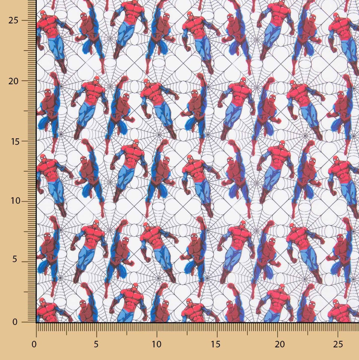 Tissu de super-héros Marvel Spiderman en coton doux et respirant. La popeline est un tissu de coton très polyvalent, doux, fin et souple. Tissu en coton idéal pour les accessoires, la décoration d'intérieur, le patchwork et même les masques.