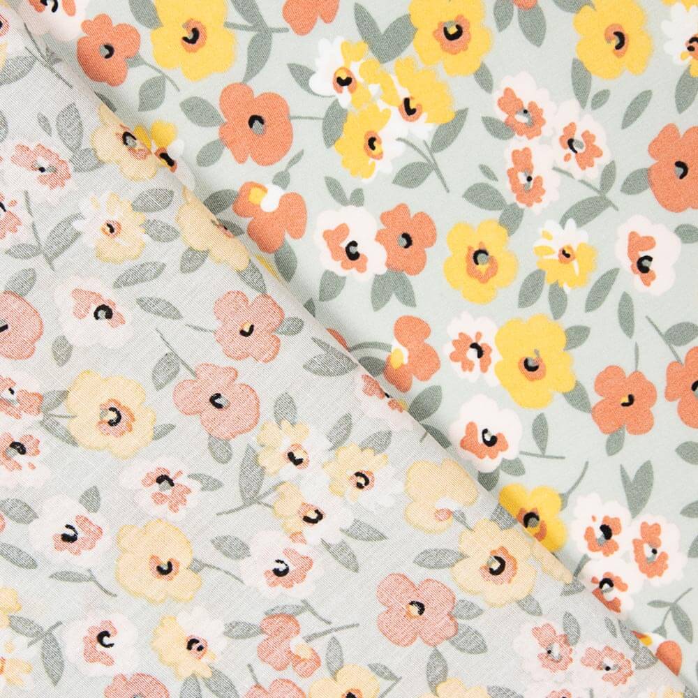 Tissu imprimé en coton pour enfants à fleurs vertes sauge. Tissu pour la couture de patchwork, coudre vos propres draps de lit, taies d'oreiller et chemises. S'agissant d'un tissu 100% coton, nous vous recommandons de le laver avant de le coudre.