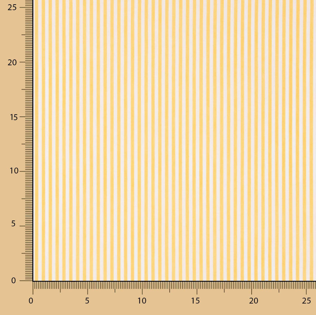 Tela de algodón y poliéster en popelín a rayas en color amarillo sobre base en blanco.