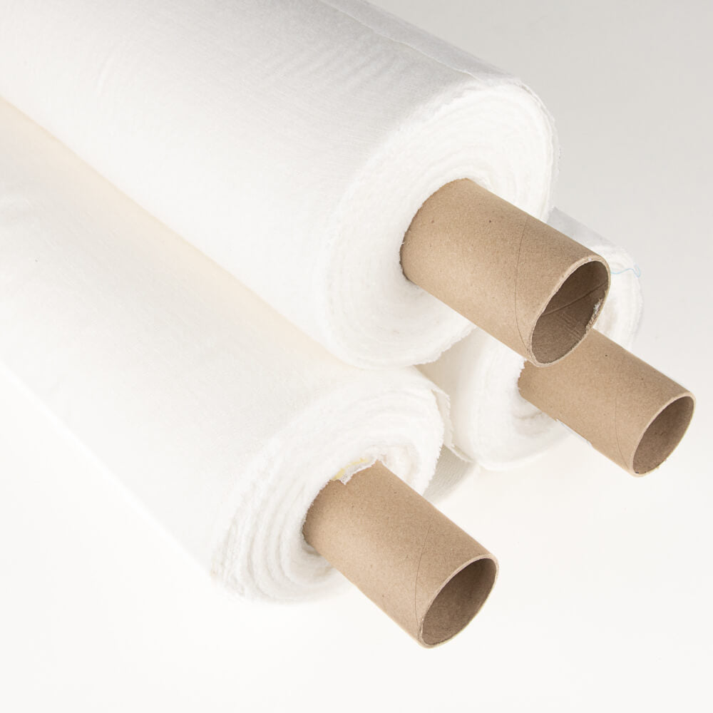 Rollo de tela de entretela perchada y adhesiva en color blanco,precio por rollo de 50 metros.