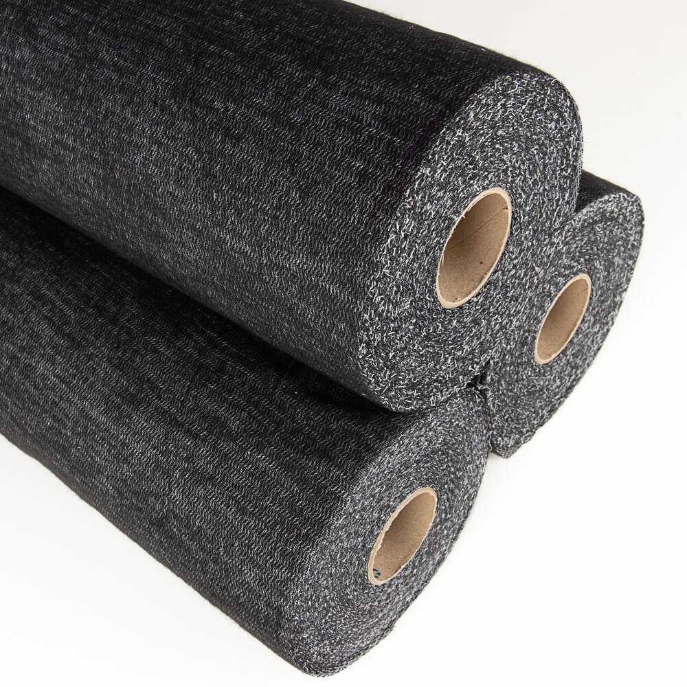 Rollo de tela de entretela perchada y adhesiva en color negro,precio por rollo de 50 metros.