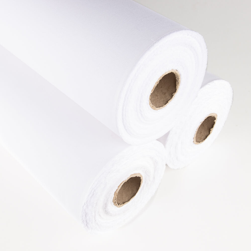 Rollo de tela de entretela rígida y adhesiva de algodón, precio por un rollo de 50 metros.