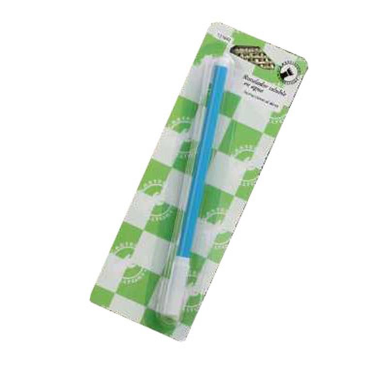 Rotulador especial para marcar tejidos. La tinta del rotulador, en color turquesa, es específica para marcado sobre tela y lavable con agua