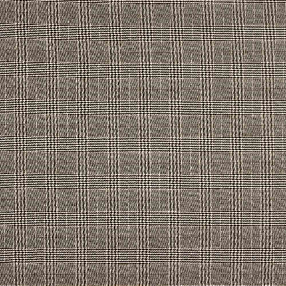 La tela de sarga de cuadro gales en tonos marrones y con mezcla de poliéster y viscosa es una opción sofisticada y duradera para la confección de prendas elegantes.