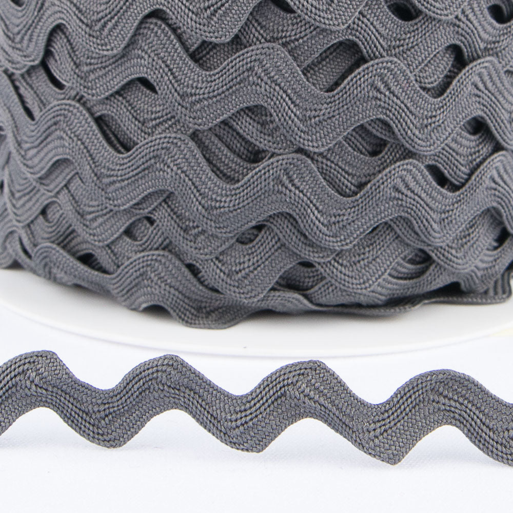 Ruban serpentine gris marengo, ruban en zigzag pour compléter vos créations. Disponible en trois tailles de largeur de bande (changements de prix par mesure): 9 millimètres, 14 mm et 20 mm. Achetez les mètres de serpentine dont vous avez besoin à partir d'un mètre.