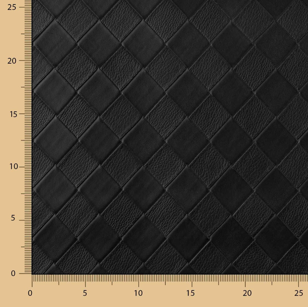 Tissu en simili cuir noir élégant avec un motif diamant légèrement gaufré qui combine des finitions mates et texturées, créant un effet visuel sophistiqué et contemporain. Sa base en polyester avec un fin revêtement feutré offre résistance et souplesse, tandis que le revêtement en PVC garantit durabilité et facilité d'entretien. Idéal pour l'ameublement, la confection de sacs, les têtes de lit, les accessoires, les accents décoratifs ou les articles de mode audacieux.