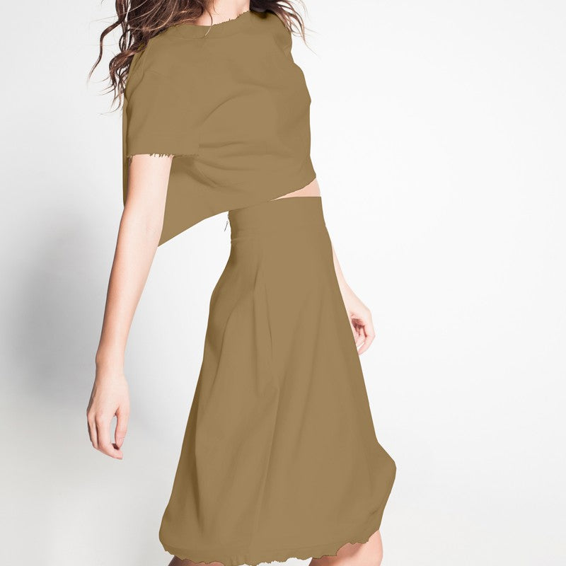 Tissu satin cationique de couleur doré. Tissu avec une face satinée, avec beaucoup de tombé et un toucher très doux, et l'envers mat. Le satin cationique se caractérise par ses fils entrelacés qui créent un effet moiré, apportant du brillant et de l'élégance à vos tenues. C'est idéal pour la confection de robes de soirées et de fêtes, ou des chemisiers.