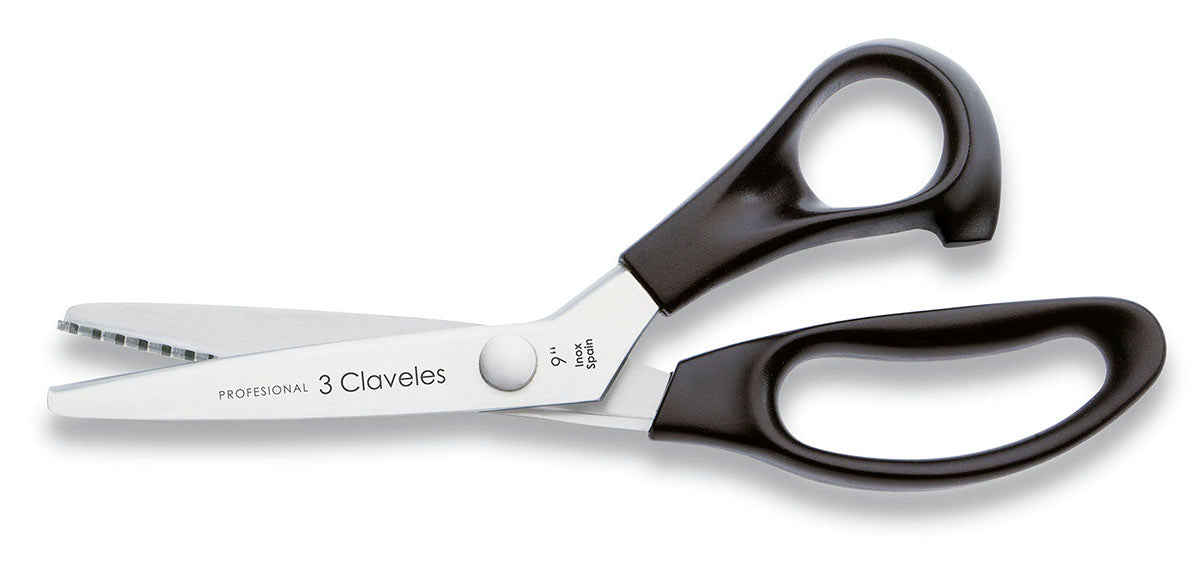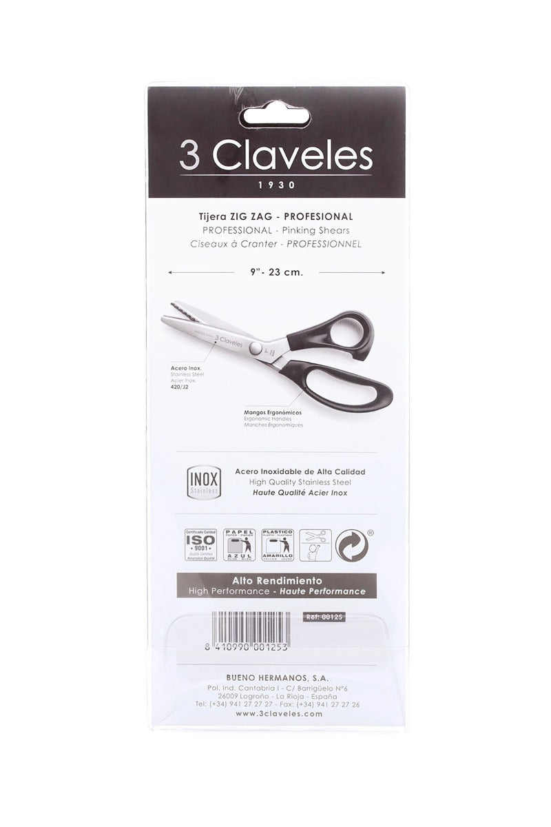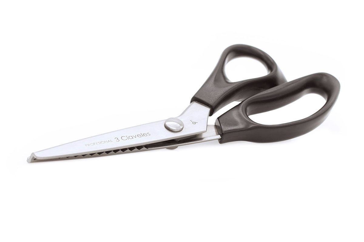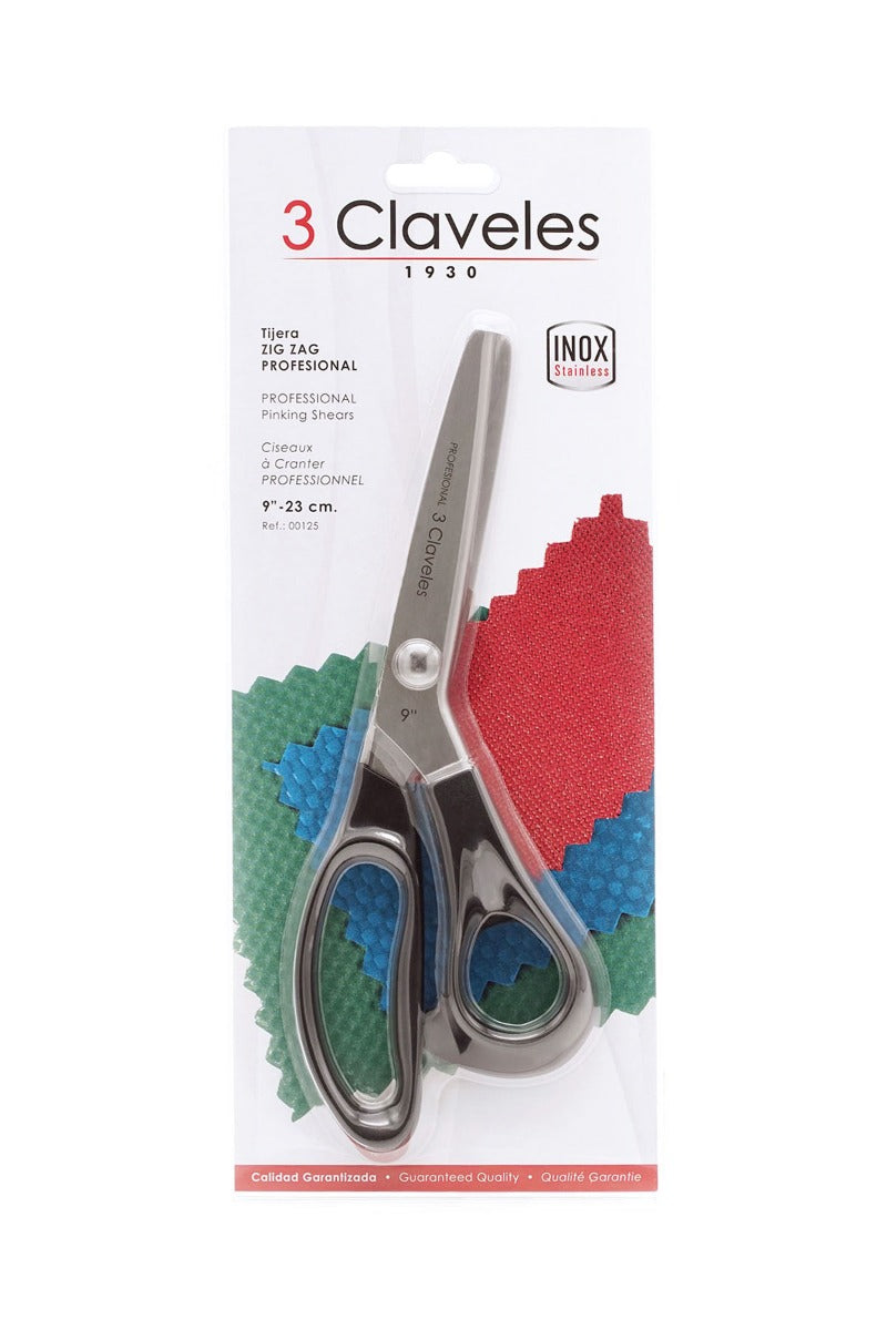 Tijera profesional de la marca 3 Claveles. Tijera en zigzag ideal para rematar y festonear, hacer adornos en picos o festones.