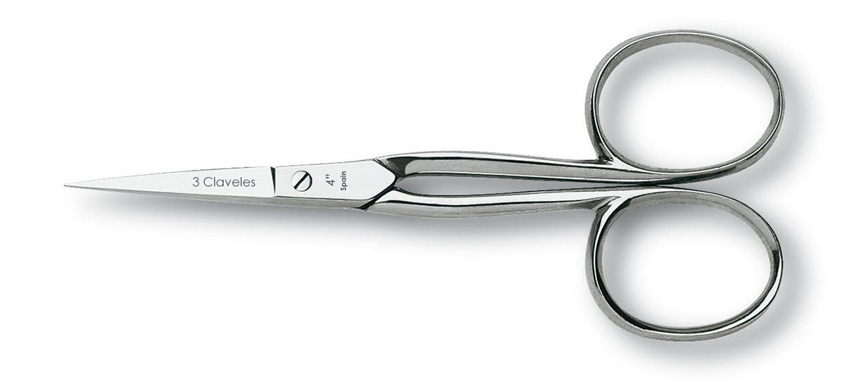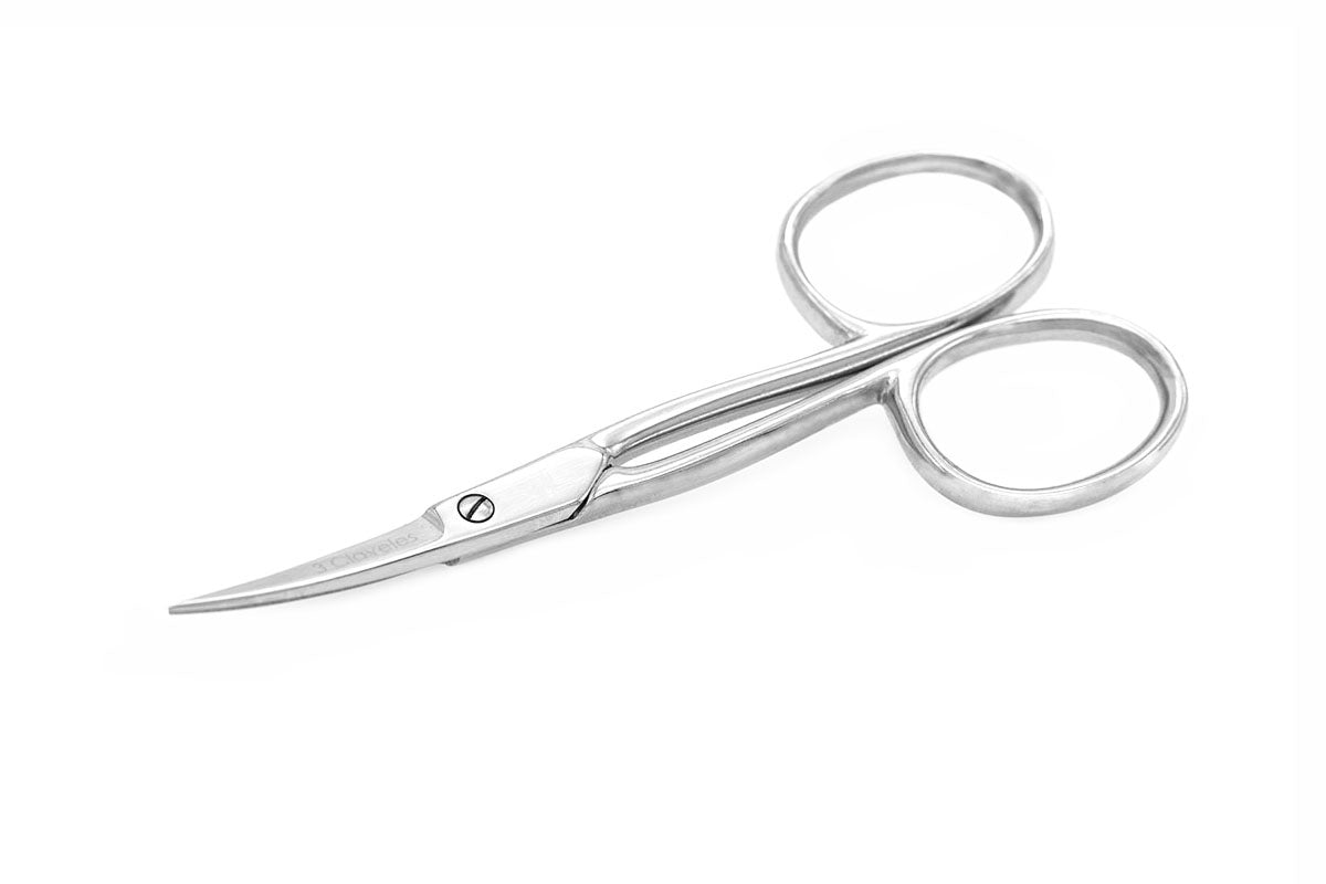 Tijera de bodar curva de la marca 3 Claveles, de tamaño pequeño y con puntas agudas para un corte preciso sin estropear la tela.