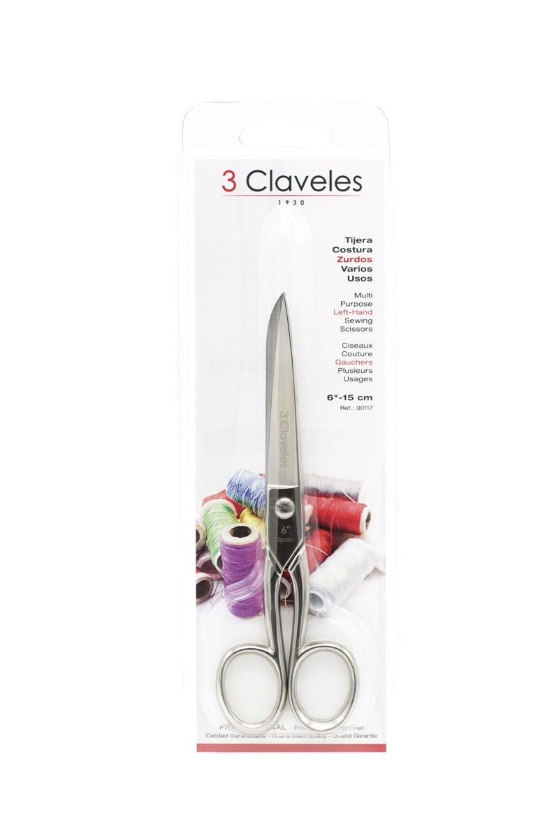 Tijera de costura para zurdos de la marca 3 Claveles, tijeras ideales para zurdos con un corte preciso en telas y filo duradero.