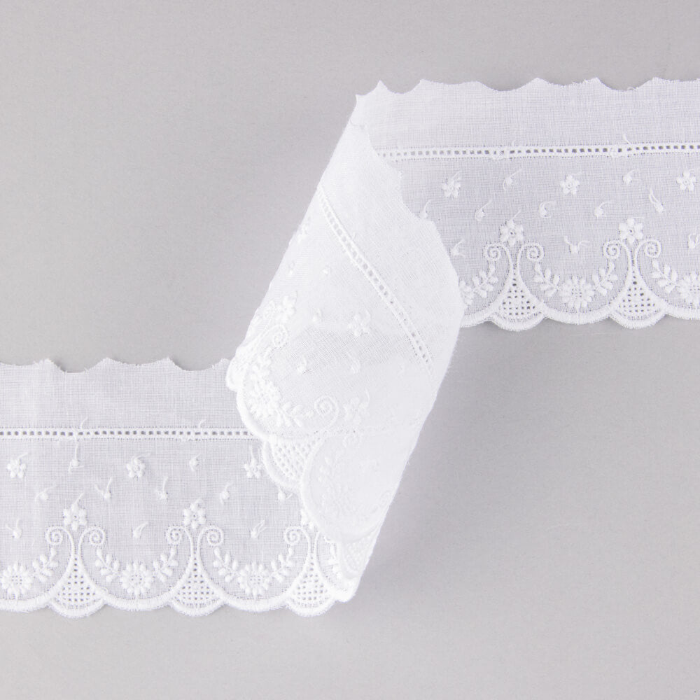 Bande de baptiste brodée 100% coton. Largeur: 5,5 cm Couleur: Blanc