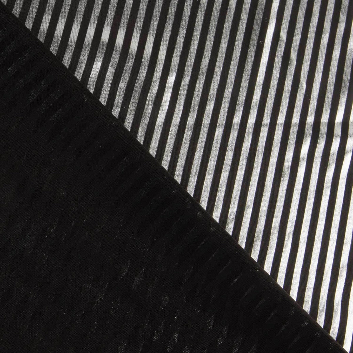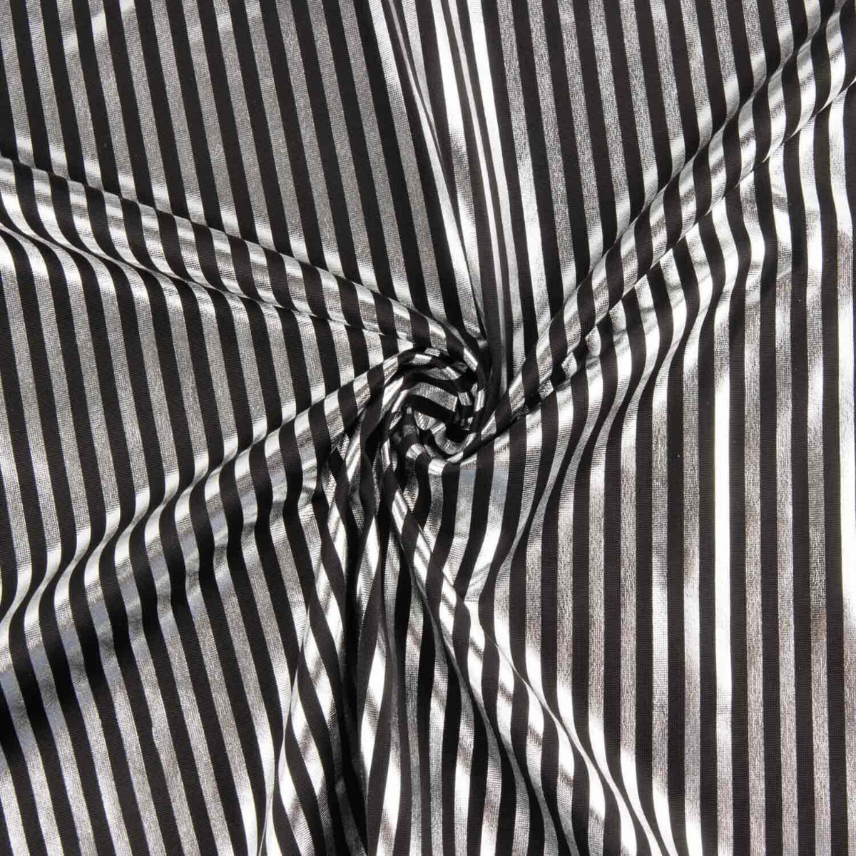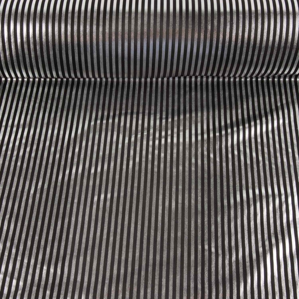 Donnez à vos créations une touche élégante et moderne avec le tissu extensible imprimé métallique Silver & Black Vertical Stripes. Ce tissu se distingue par ses rayures verticales alternées de 0,5 cm en argent irisé et noir, créant un effet optique amincissant et un impact visuel dynamique. Composé à 100 % de polyester et mesurant 150 cm de large, il offre une légère élasticité dans la largeur (pas d'élasticité dans la longueur). Idéal pour les costumes, les vêtements de scène, les accessoires, la décoration thématique, les sacs, l'artisanat ou les créations faites main, il n'est toutefois pas recommandé pour les maillots de bain ou les vêtements moulants tels que les justaucorps. Son design épuré et brillant en fait un excellent choix pour les styles théâtraux ou la mode audacieuse avec une touche futuriste ou glamour.