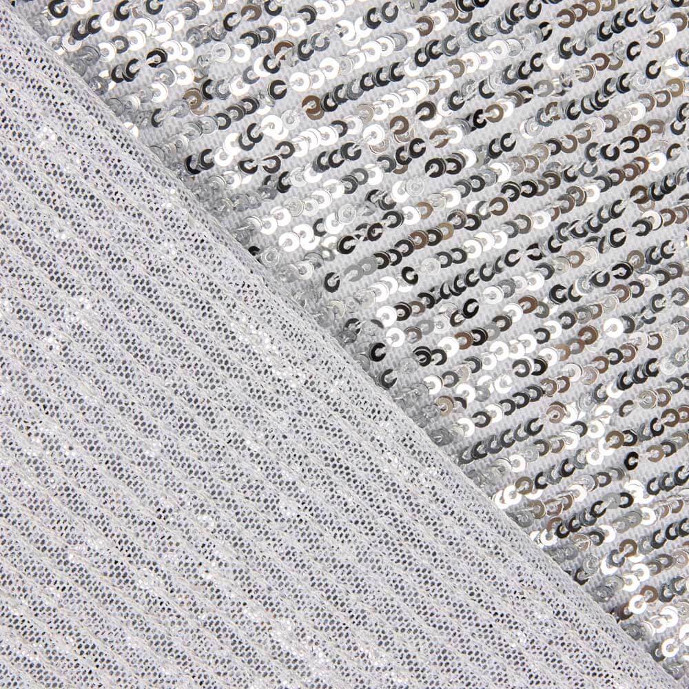 Robes de soirée à paillettes sur base de tulle lycra en couleur argent clair. Paillettes brillantes et très voyantes, fines, avec beaucoup de chute et de haute qualité. La paillette est un tissu qui ajoute de l'élégance aux vêtements prêts à porter. Avec ce tissu à paillettes noir, vous pouvez réaliser vos propres jupes scintillantes, vos robes de soirée et toutes sortes d'appliqués à la mode.