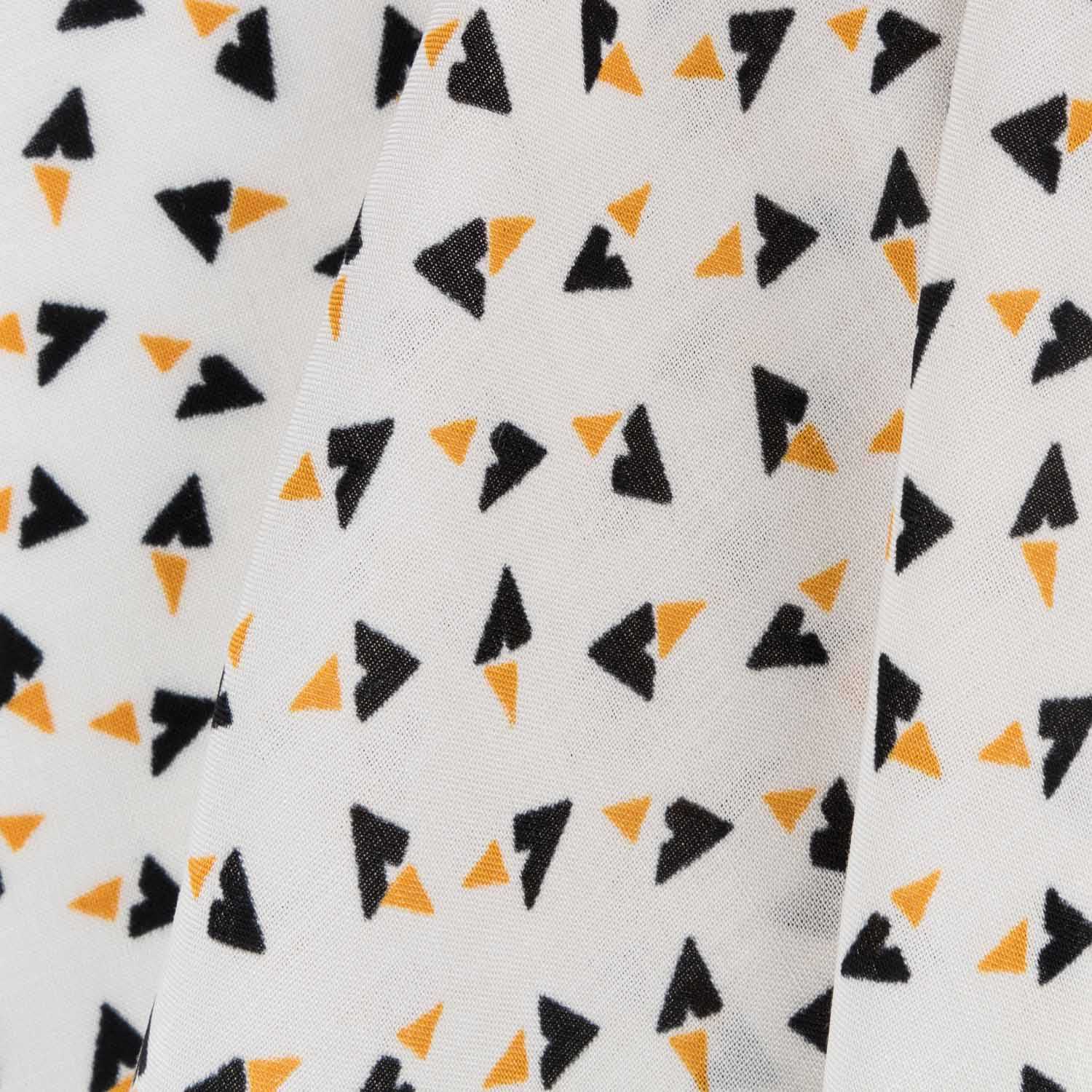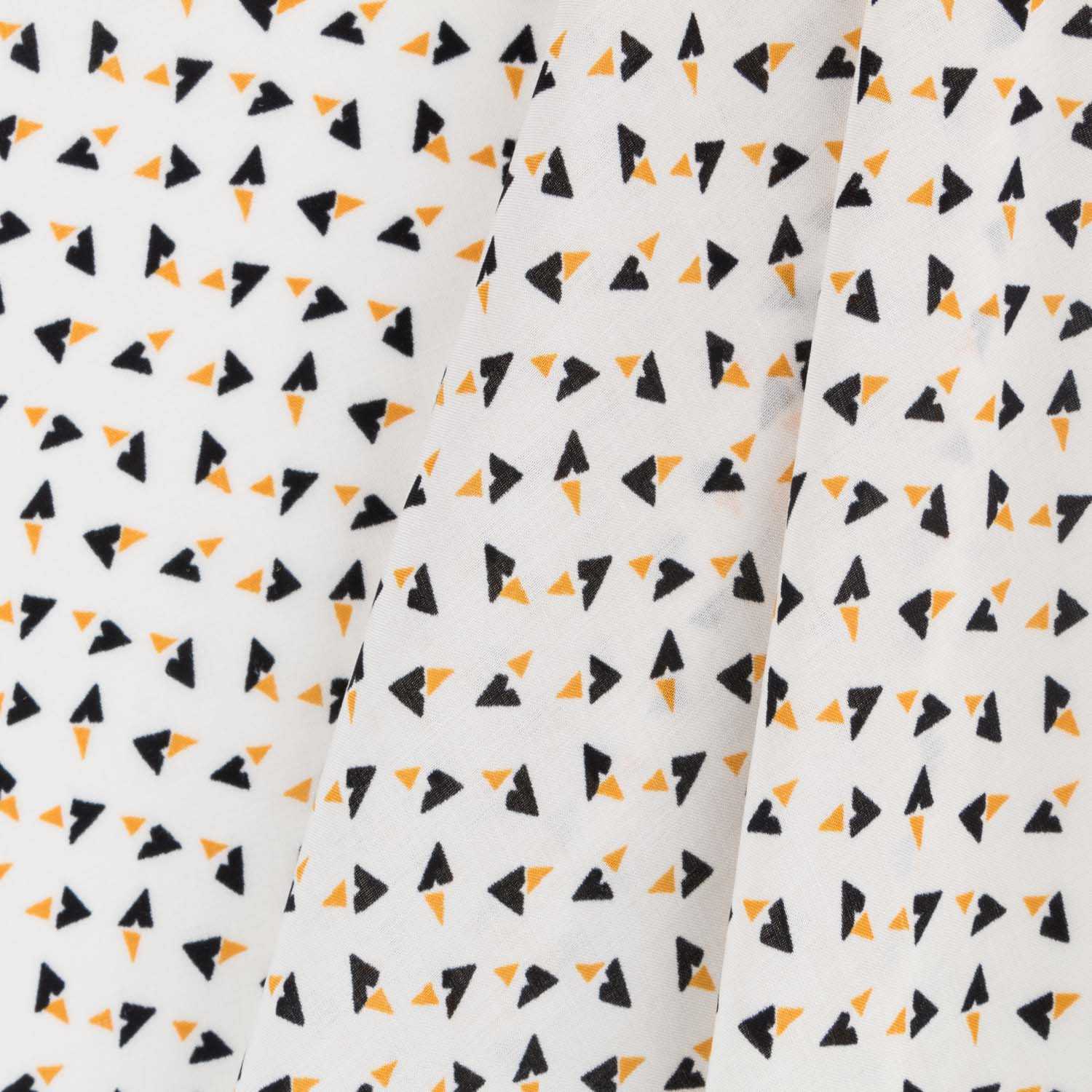 Tissu imprimé de petits motifs noirs sur fond écru. La viscose est un tissu très fluide, fin et très doux. Tissu de mode pour toutes les saisons de l'année grâce à sa polyvalence. Imprimé viscose idéal pour les robes, jupes, chemises, vestes et kimonos.