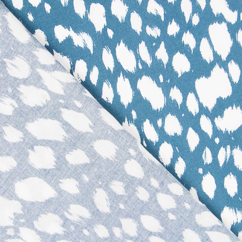 Tissu viscose chiné canard. La viscose est un tissu polyvalent, très doux et frais. Un tissu fin qui ne transparent pas. Tissu en fibre naturelle idéal pour la confection de robes, jupes, chemises et pantalons. Tissu 100% viscose: nous vous recommandons de le laver avant la manipulation.